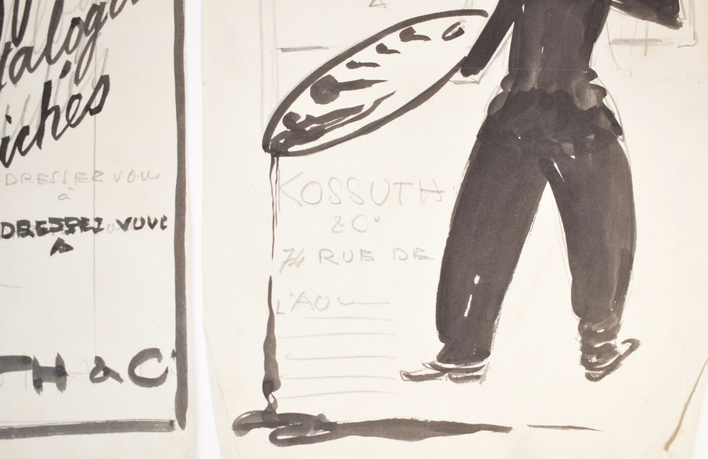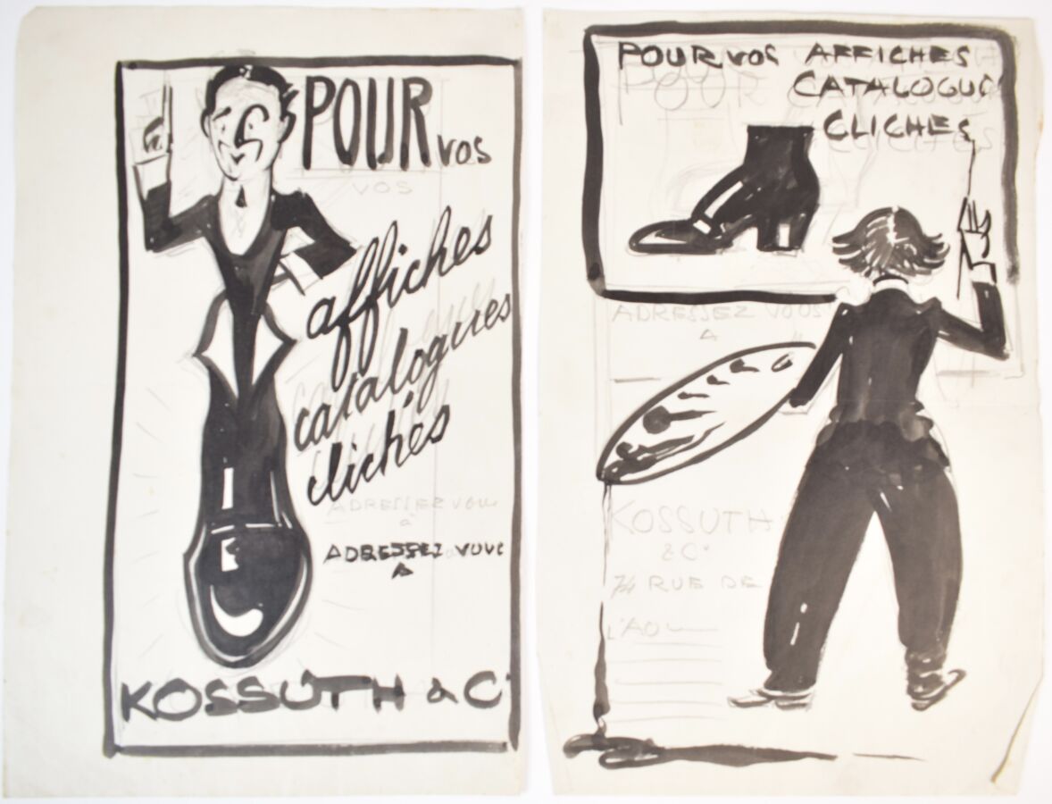 Edouard SAUNIER (1885-1918), "KOSSUTH & CIE", deux dessins à l'encre et lavis d'encre sur papier, 32 x 19 cm.