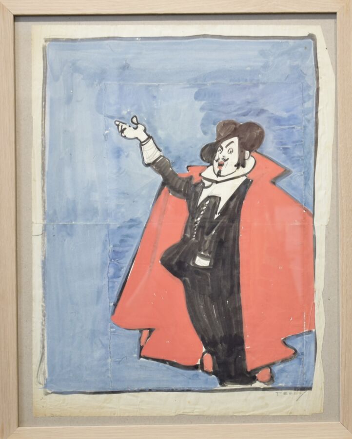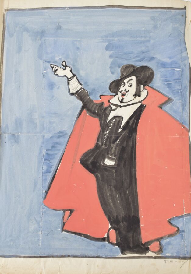 Edouard SAUNIER (1885-1918), "LA CAPE ROUGE", encre et aquarelle sur papier, signée en bas à droite, encadrée, 40 x 30 cm.