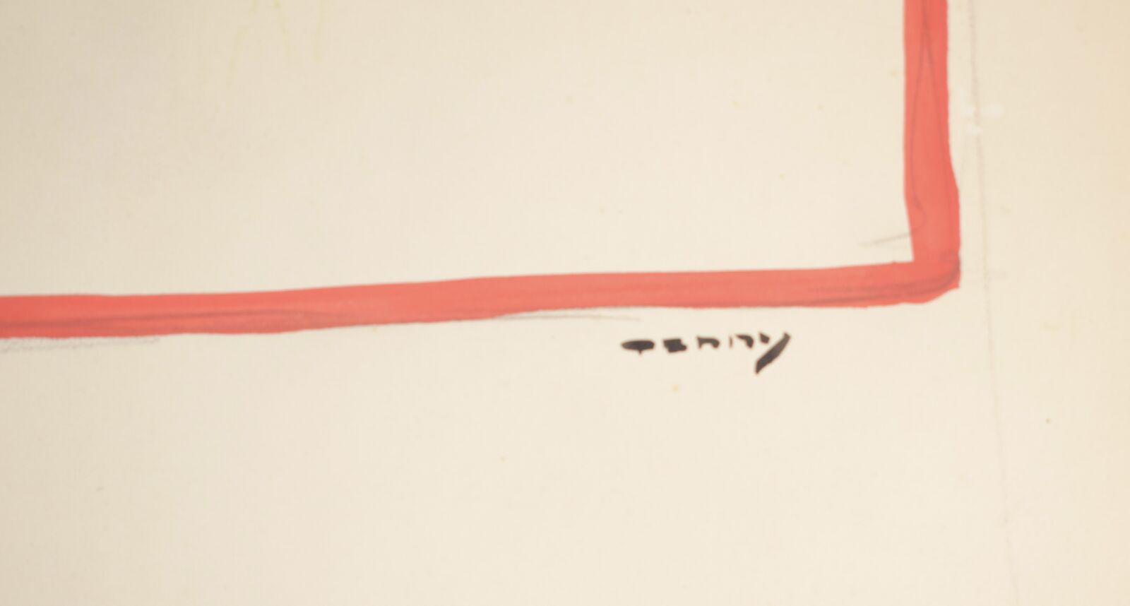 Edouard SAUNIER (1885-1918), "L'arquebusier", dessin et gouache sur papier fort, signé en bas à droite, 43 x 32.5 cm.