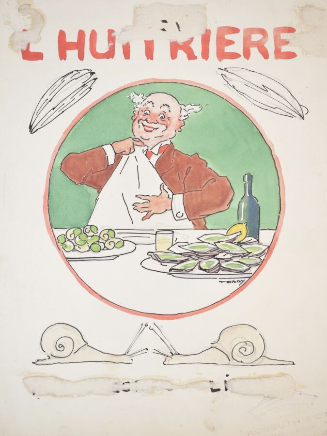 Edouard SAUNIER (1885-1918), "L'Huitriere", dessin, gouache, et aquarelle sur papier, signé au centre à droite, 28 x 20.5 cm.