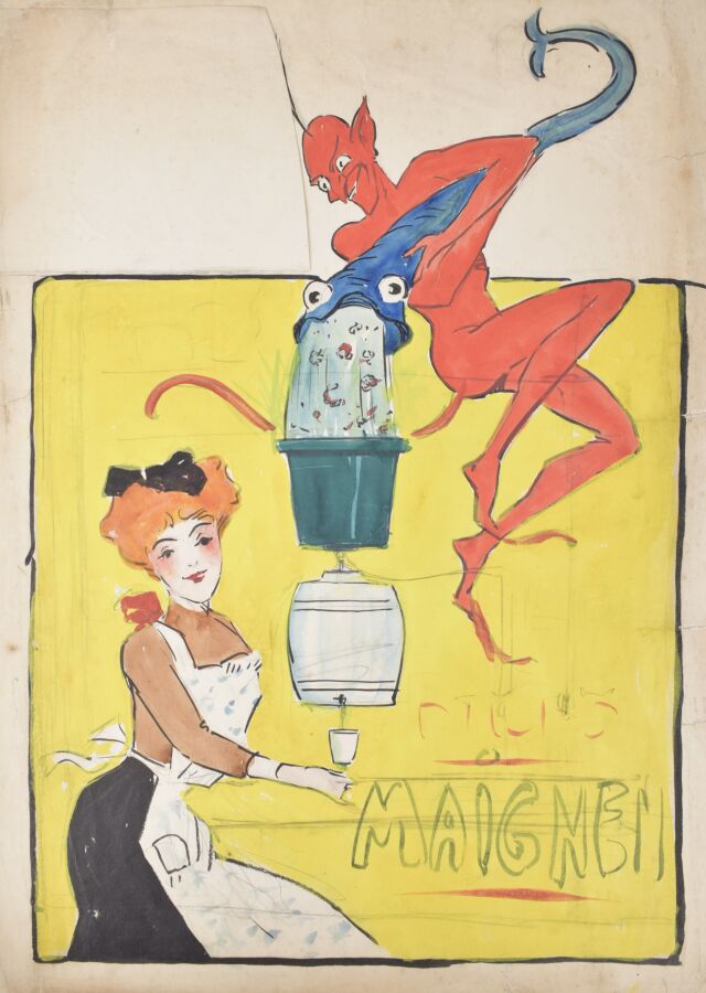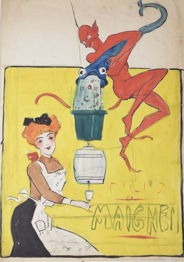 Edouard SAUNIER (1885-1918), "MAIGNEM", dessin, gouache et aquarelle, 48 x 34 cm.
