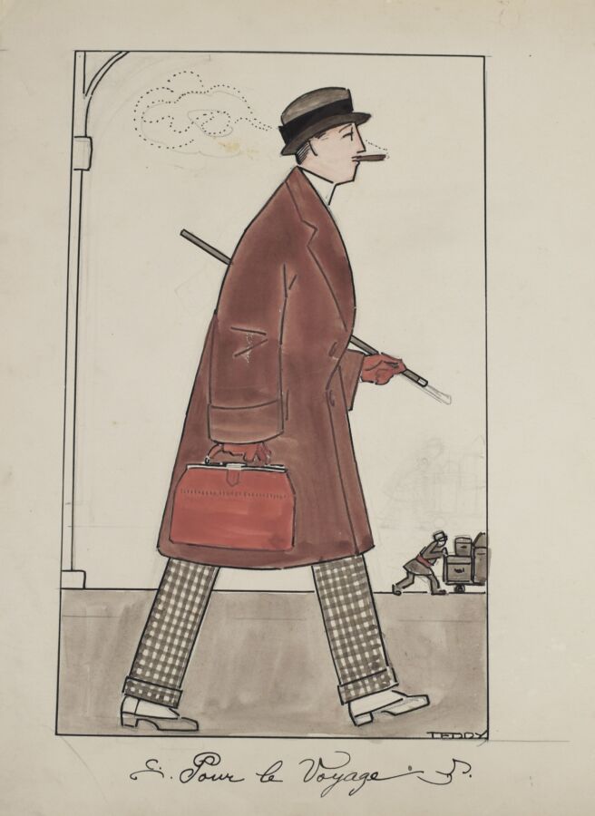 Edouard SAUNIER (1885-1918), "Pour le Voyage", dessin et aquarelle sur papier, signé en bas à droite, 32 x 25 cm.