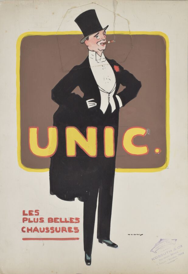 Edouard SAUNIER (1885-1918), "UNIC, les plus belles chaussures", gouache sur papier fort, signée en bas à droite, 42.5 x 29.5 cm.