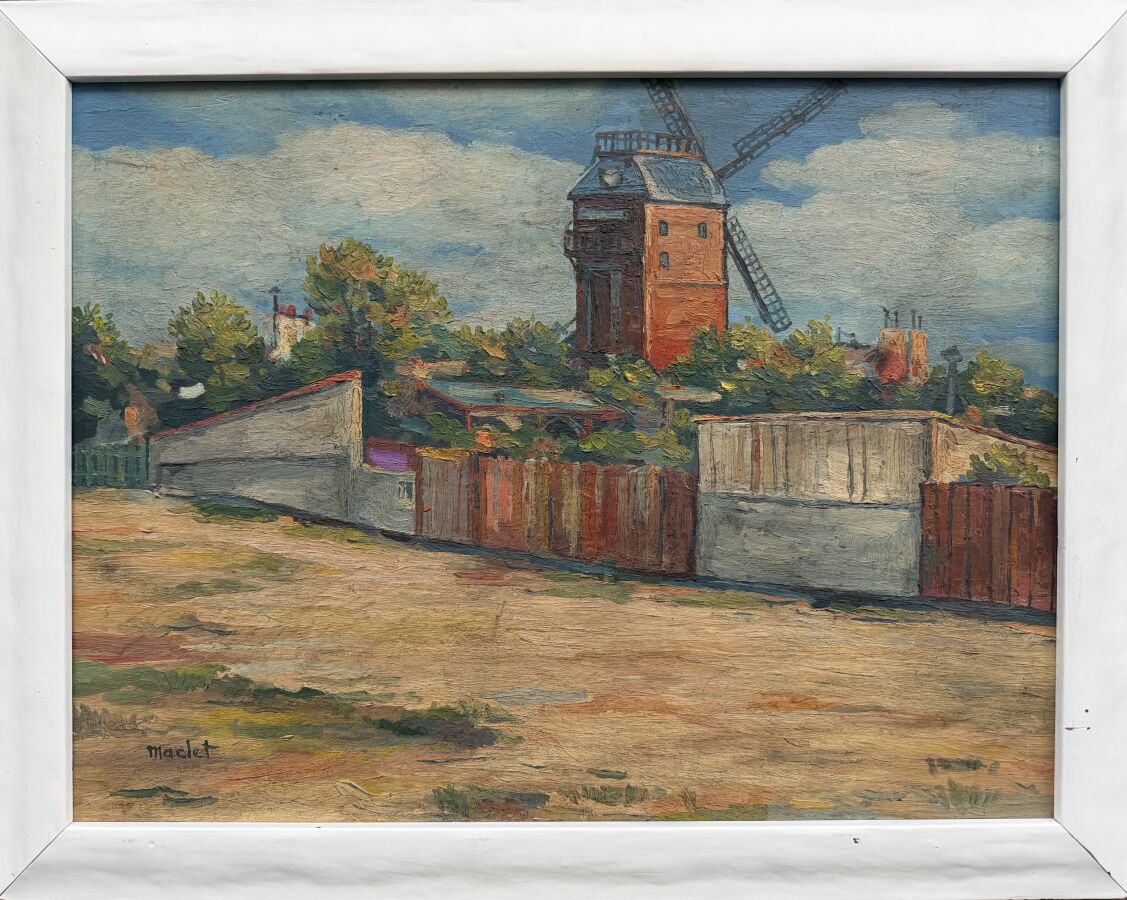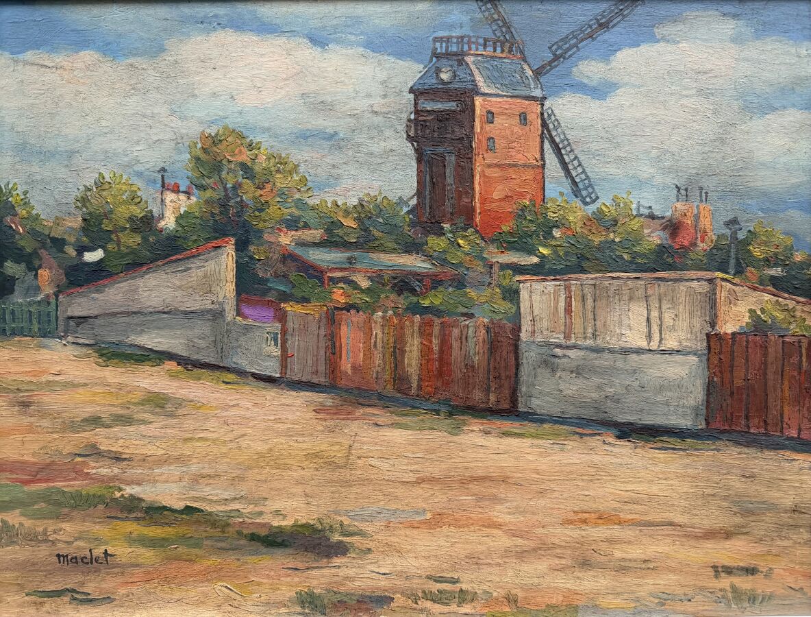 Elisée MACLET (1881-1962), "Le moulin de la Galette à Montmartre", huile sur panneau signée en bas à gauche, 39,5 x 52,5 cm