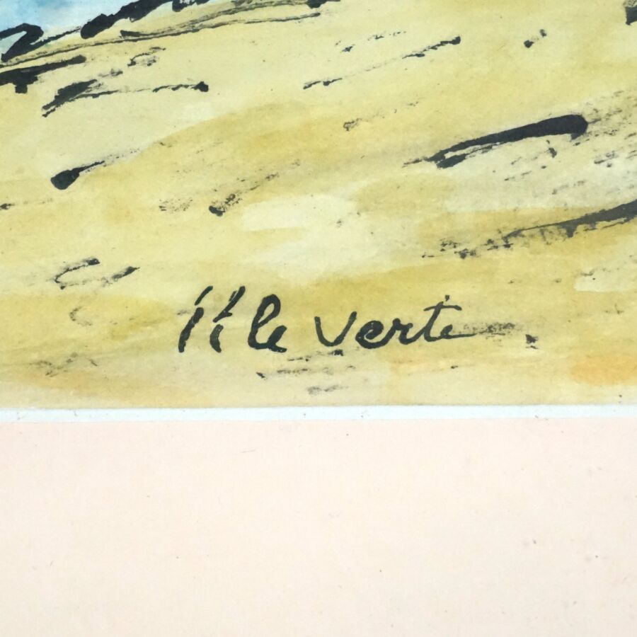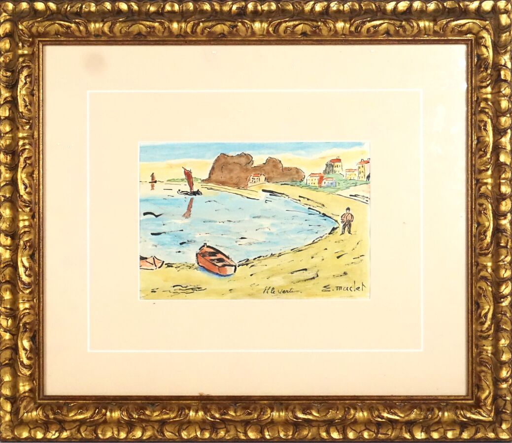 Elisée MACLET (1881-1963), "L'île verte", aquarelle sur papier, signée en bas à droite, située en bas au centre, Dim. 14,5 x 22 cm (à vue).