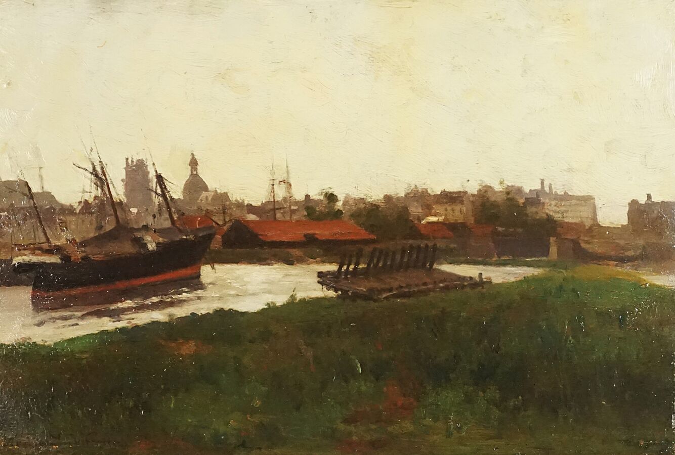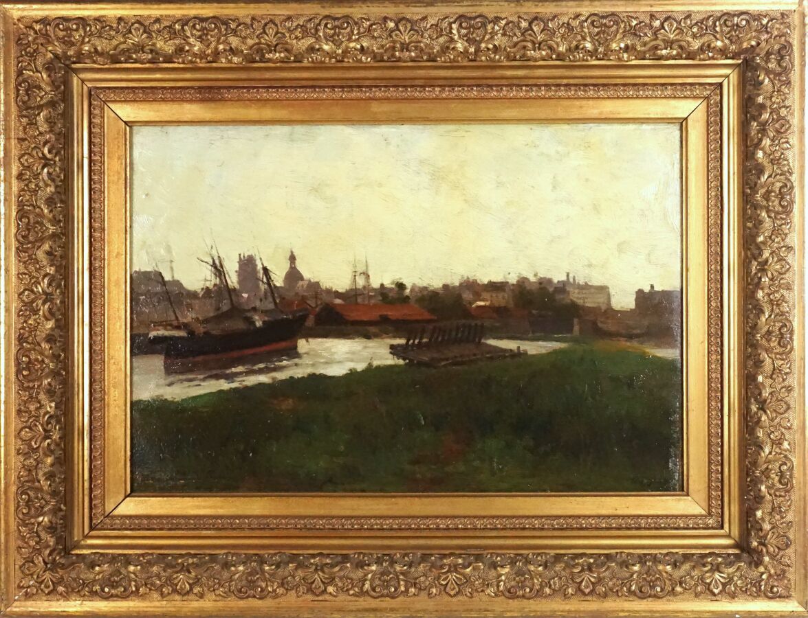 Elodie LA VILLETTE (1843-1917), "Dieppe, les Retenues", huile sur panneau signée en bas à gauche, titrée au dos, 29.5 x 44.5 cm.