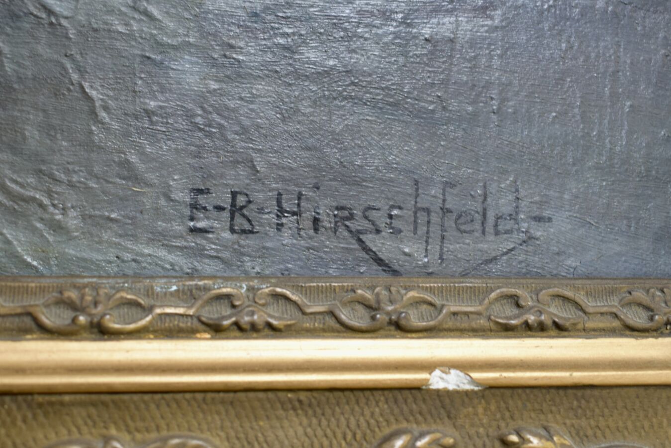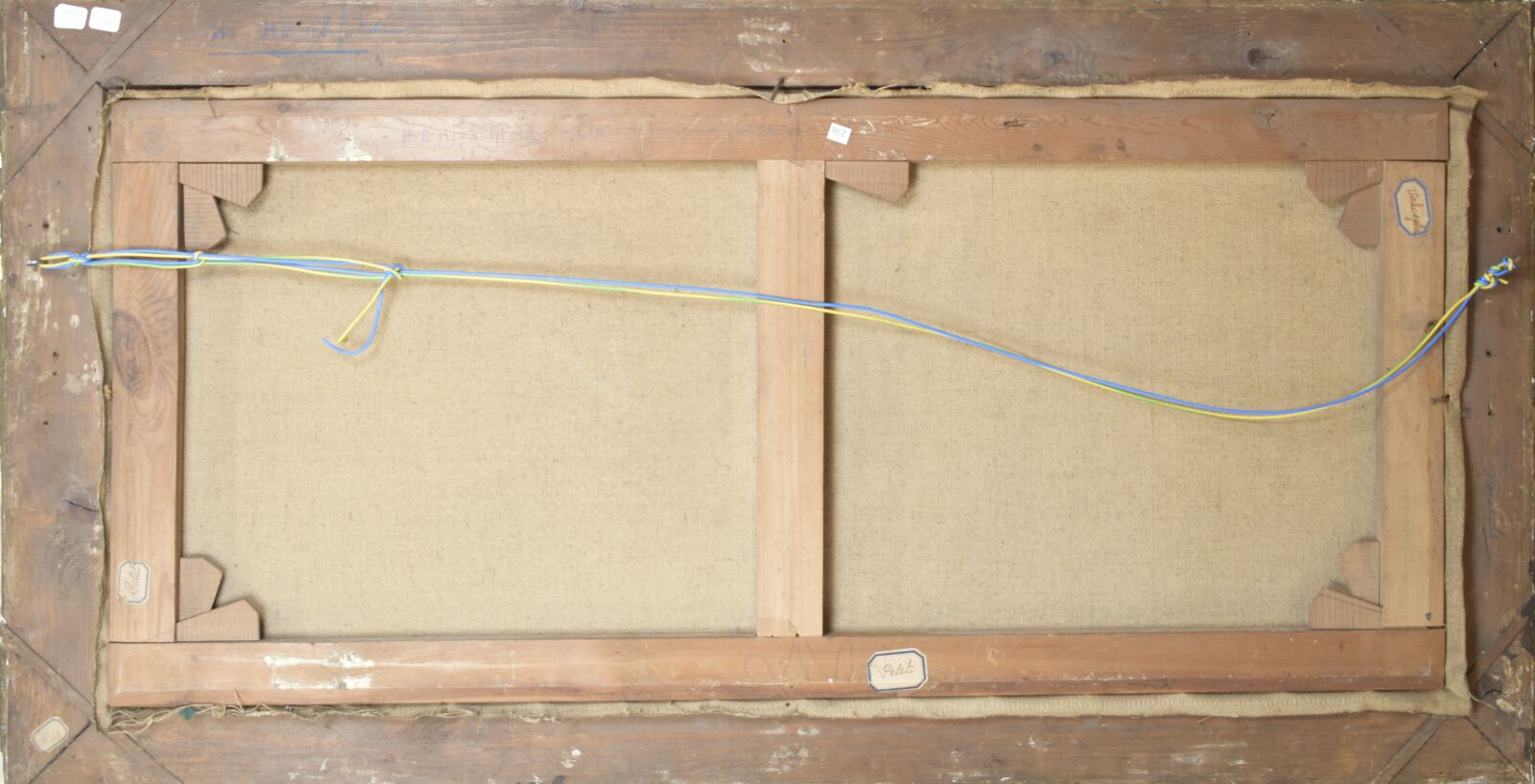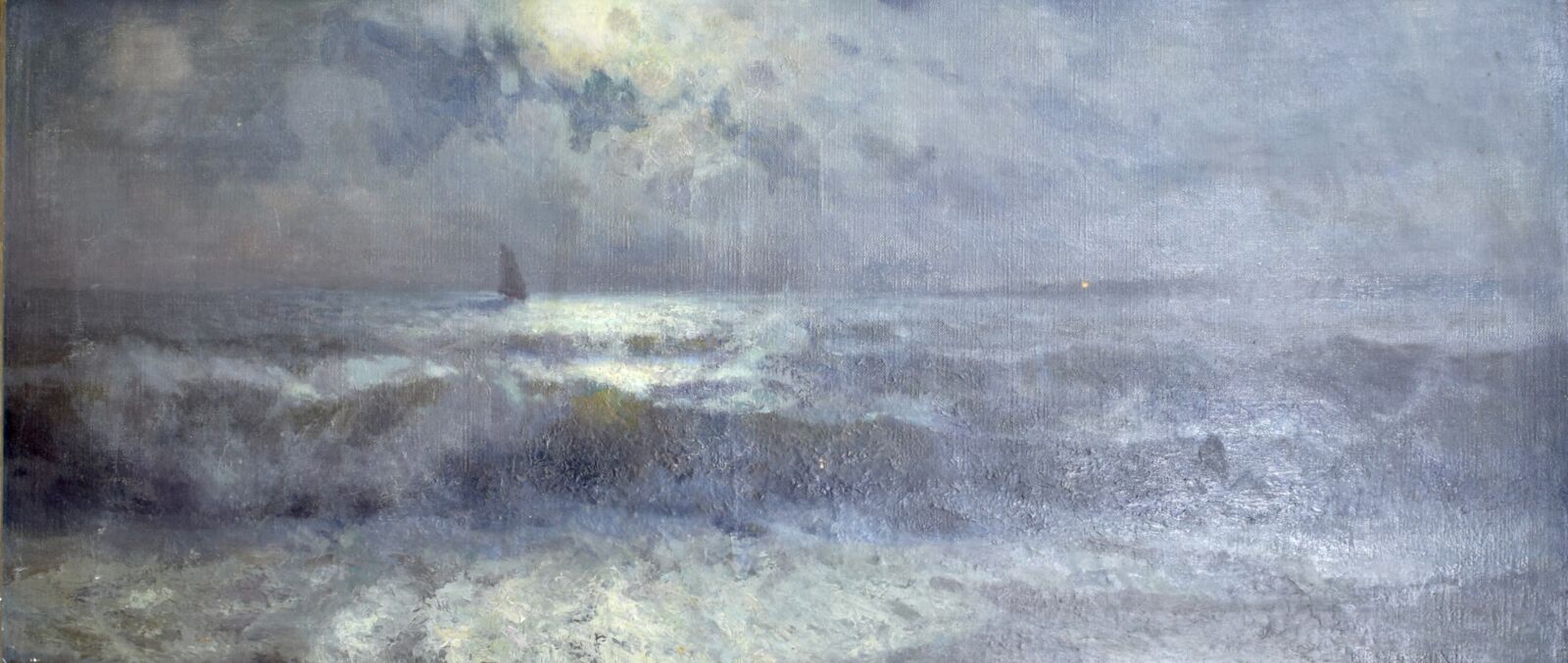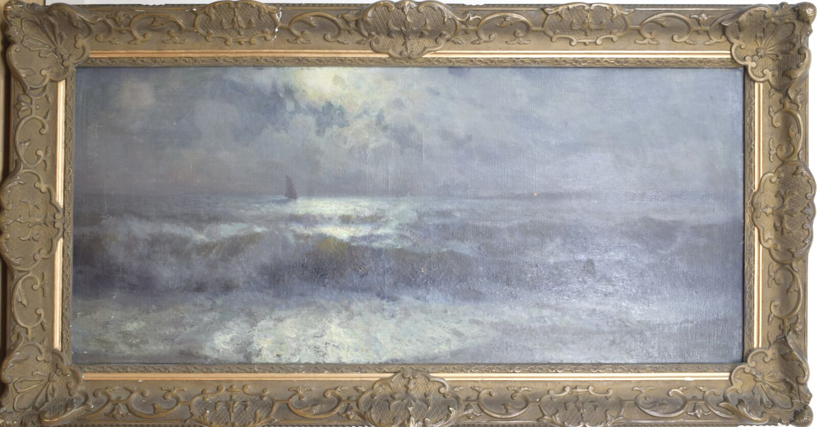 Emil-Bénediktoff HIRSCHFELD (1867-1922), "Clair de lune sur l'océan", huile sur toile signée en bas à droite, contresignée et titrée au dos, 45 x 102 cm, (manques, rentoilage).