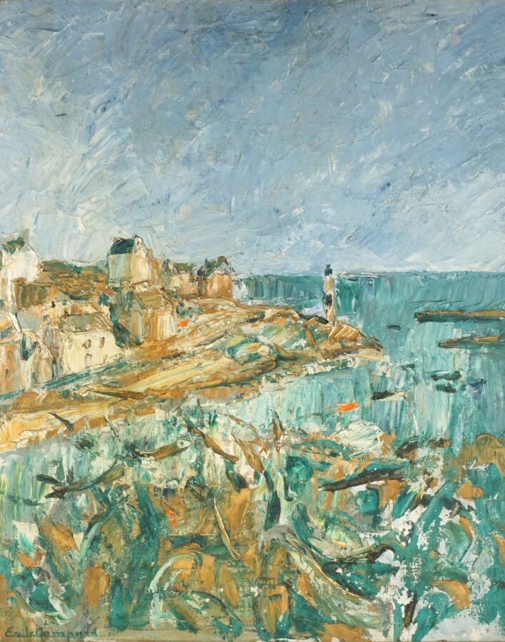 Emile COMPARD (1900-1977), "Le port", huile sur toile signée en bas à gauche, 65 x 54.5 cm.
