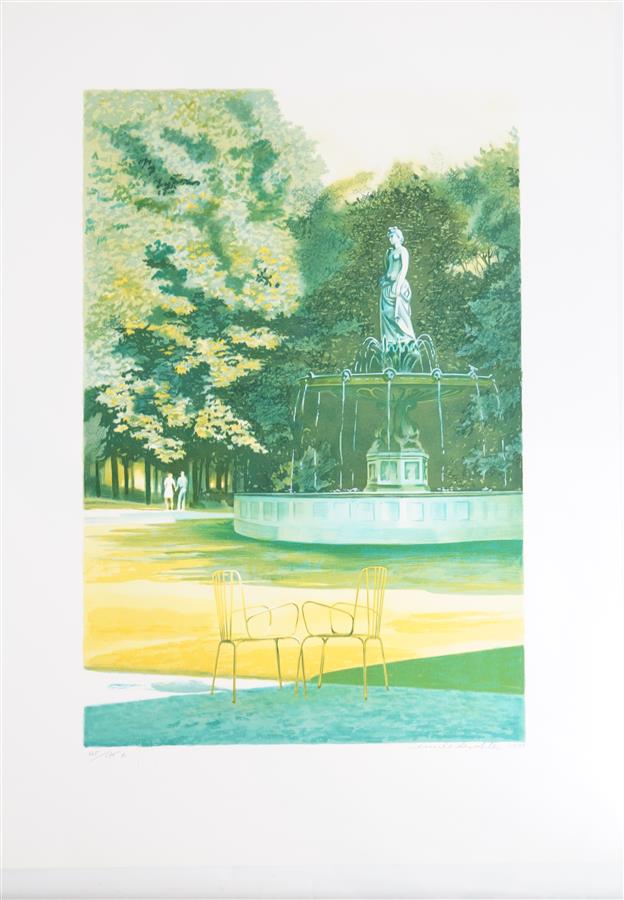 Émile DESCHLER (1910-1991), "Le jardin parisien", lithographie en couleur signée dans la marge en bas à droite et numérotée 45/175 R en bas à gauche, 56.5 x 37.5 cm.