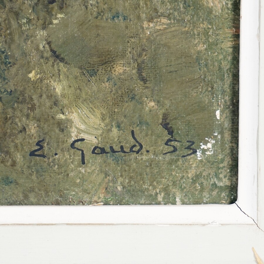 Emile GAUD (1929), "Nature morte à la grappe de raisin et à l'aiguière de vin" 53, huile sur toile signée et datée en bas à droite, 56 x 46.5 cm (petit trou de punaise à la toile).