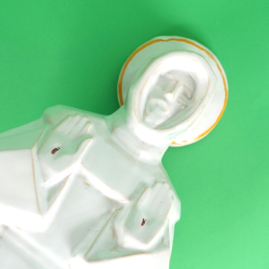 Emile Just BACHELET (1892-1981) pour HENRIOT QUIMPER, "Saint-François", sujet en faïence émaillée, représentant un moine franciscain montrant ses stigmates, titré sur la base, circa 1930, H.36.5 cm.