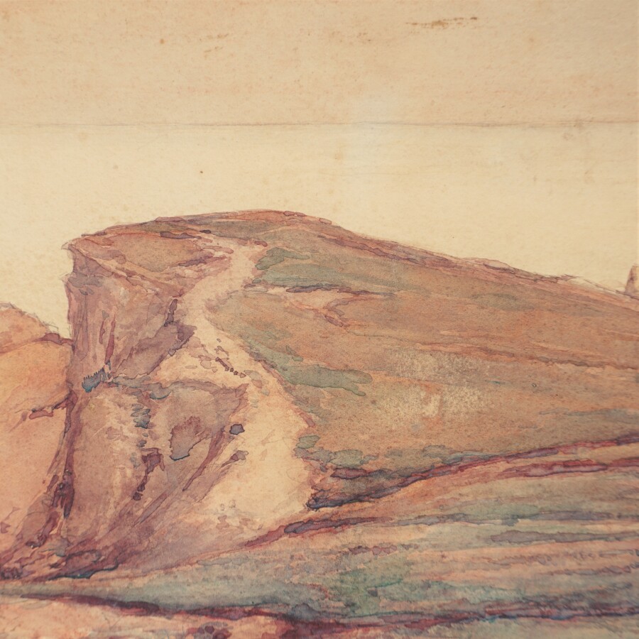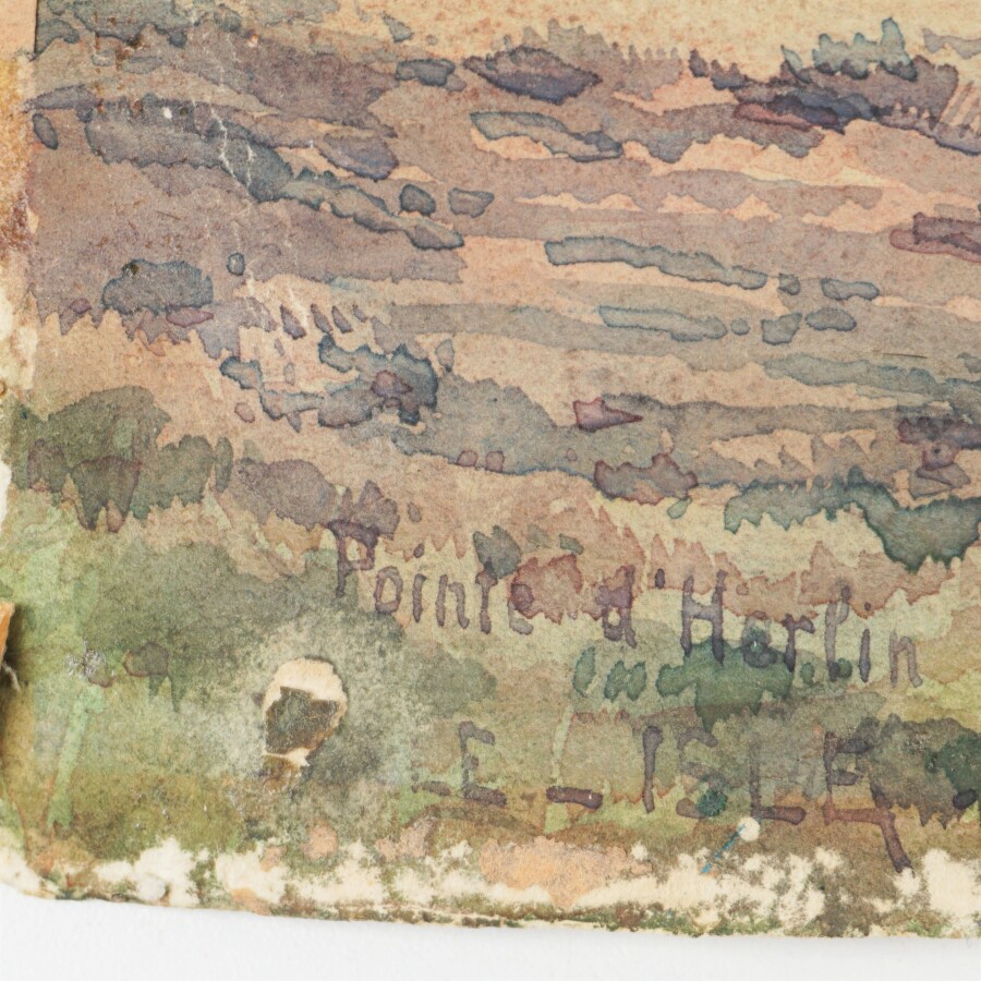 Emile Marie Victor BAZIRE (XIX-XXe), "La pointe d'Herlin" 1895, aquarelle sur papier marouflée sur carton, signée et datée en bas à droite, 34.5 x 51 cm (déchirures en bordure).