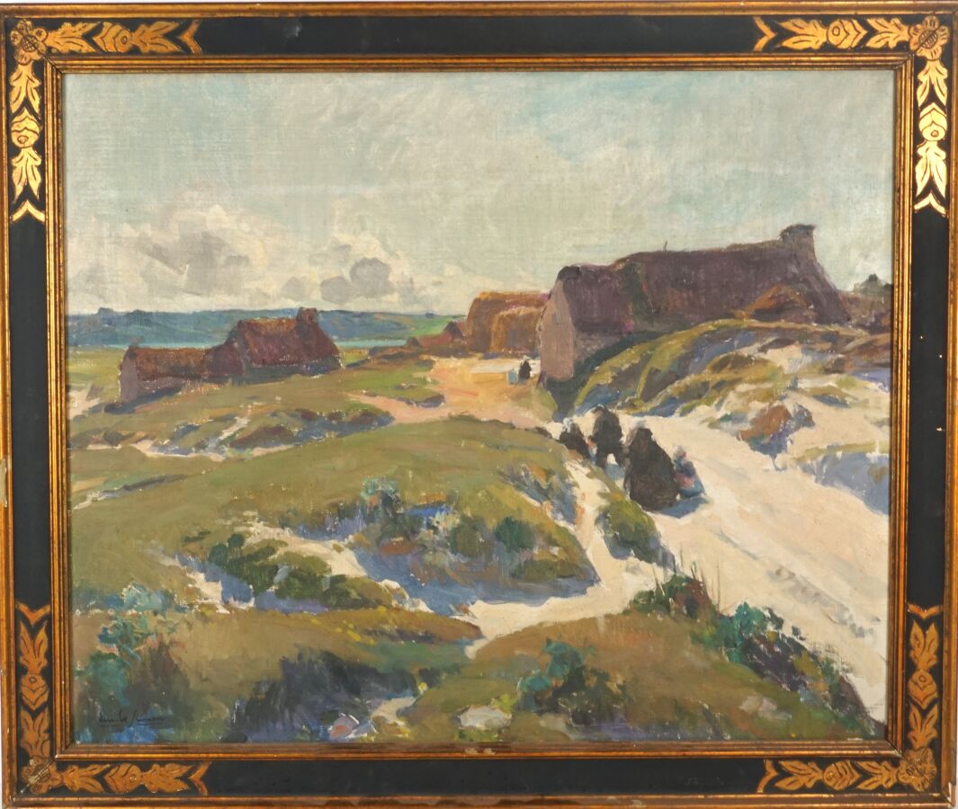 Émile SIMON (1890-1976), "Le hameau dans les dunes du Finistère", huile sur toile signée en bas à gauche, 50.3 x 61.2 cm.