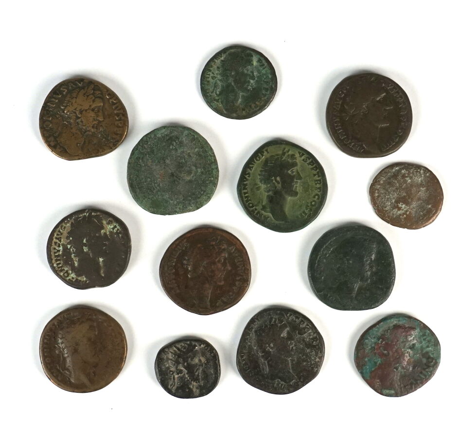 Empire Romain : lot de 10 Sesterces + 1 Dupondius et 2 As d' Antonin le Pieux 138-161, revers variés dont ITALIA. B/TB.