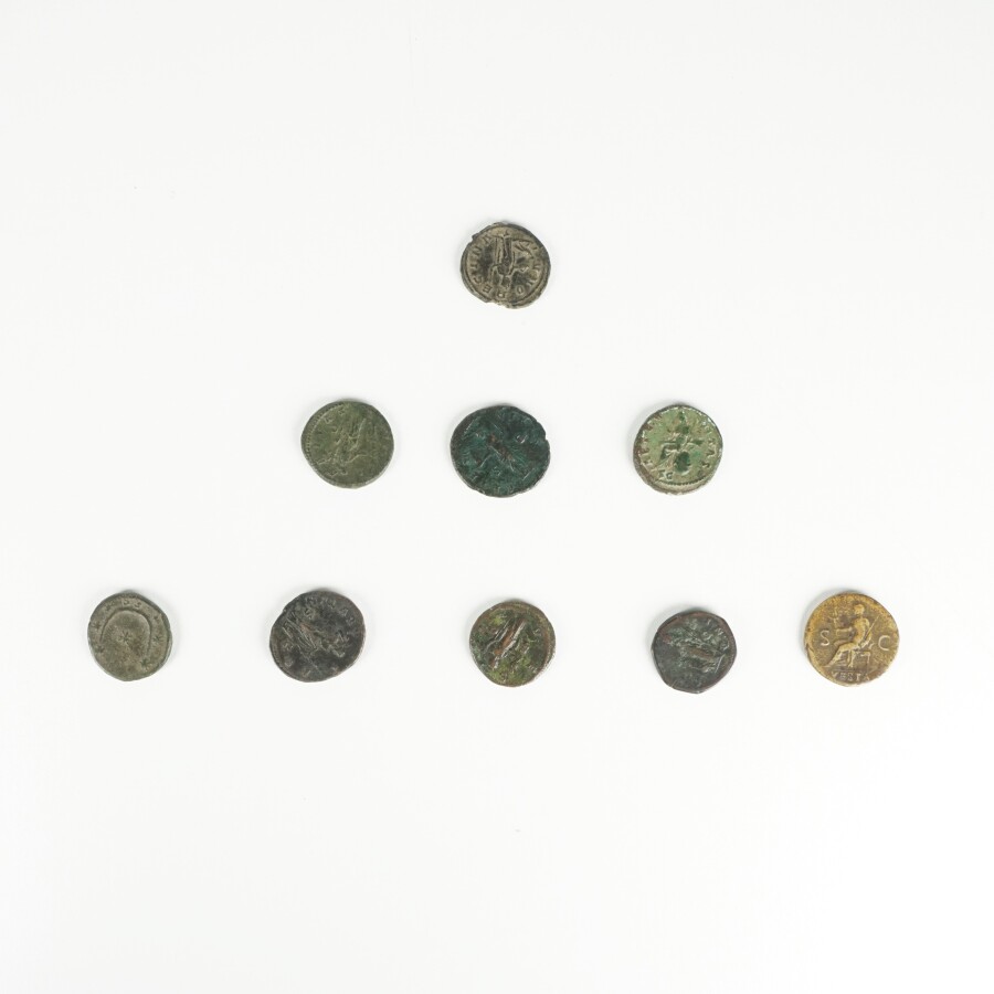EMPIRE ROMAIN : Lot de 9 As et Dupondius, cuivre et bronze, dont Crispine, Severine, Julia-Mamaea, Diva Faustina, Lucilla, Faustine, Julia, B à TB+.