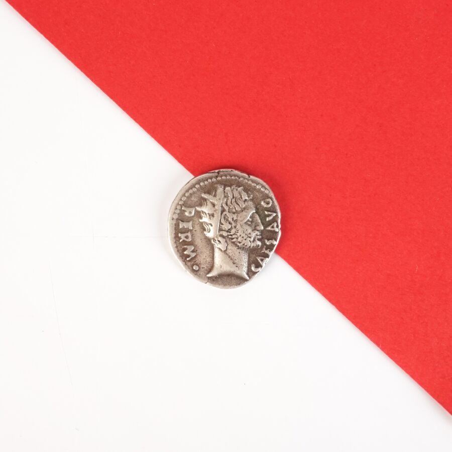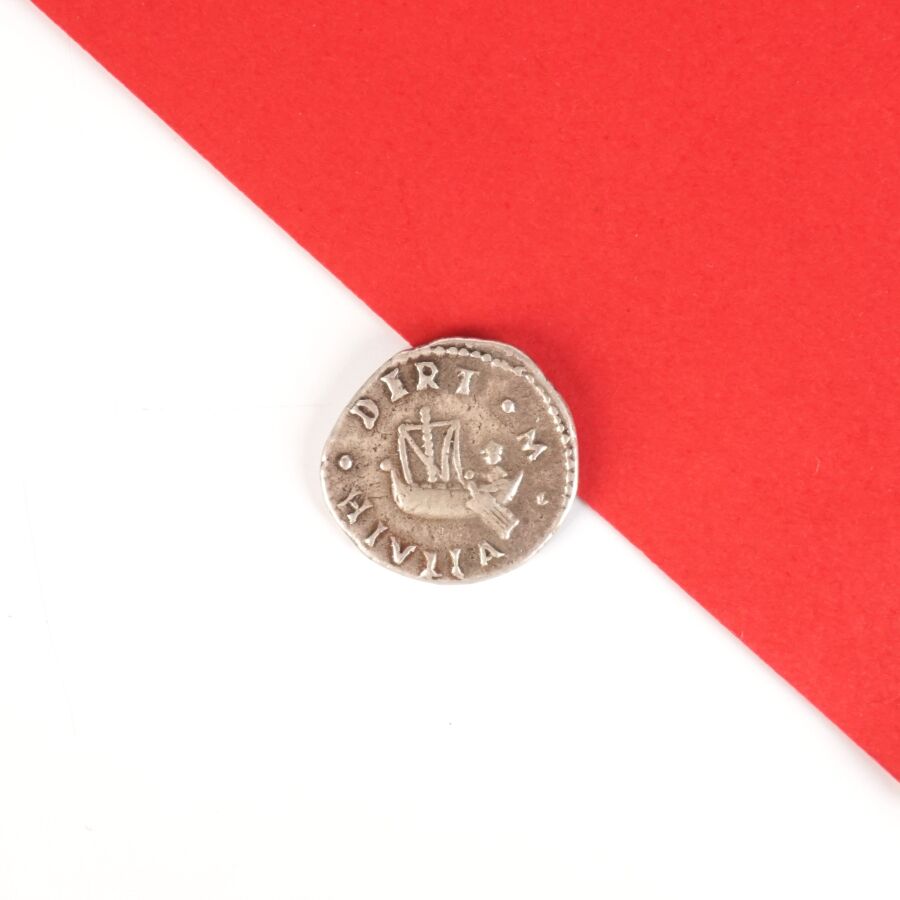 EMPIRE ROMAIN, Provinciale : Denier frappé sous Tibère 14-37, Ville d'Ilercavonia-Dertosa, Hispanie Tarraconaise Argent, Poids brut : 3,66 g environ : A/ Portrait d'Auguste à droite tête radiée et barbue : PERM . CAES AUG, R/ Galère vers la gauche : DERT.M.H IVILA.