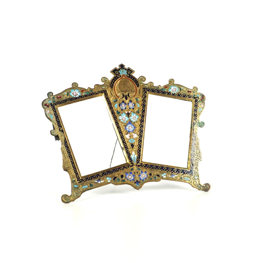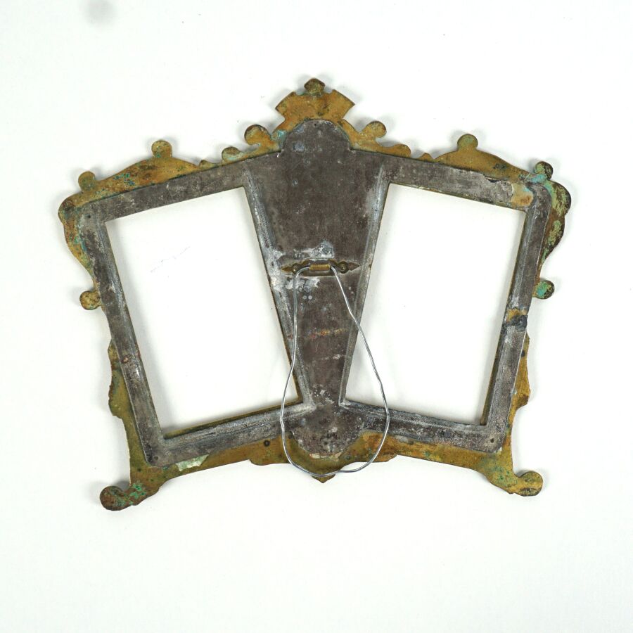Encadrement pour deux photos en bronze doré à décor de fleurs, de style Art Nouveau, 16 x 20 cm.