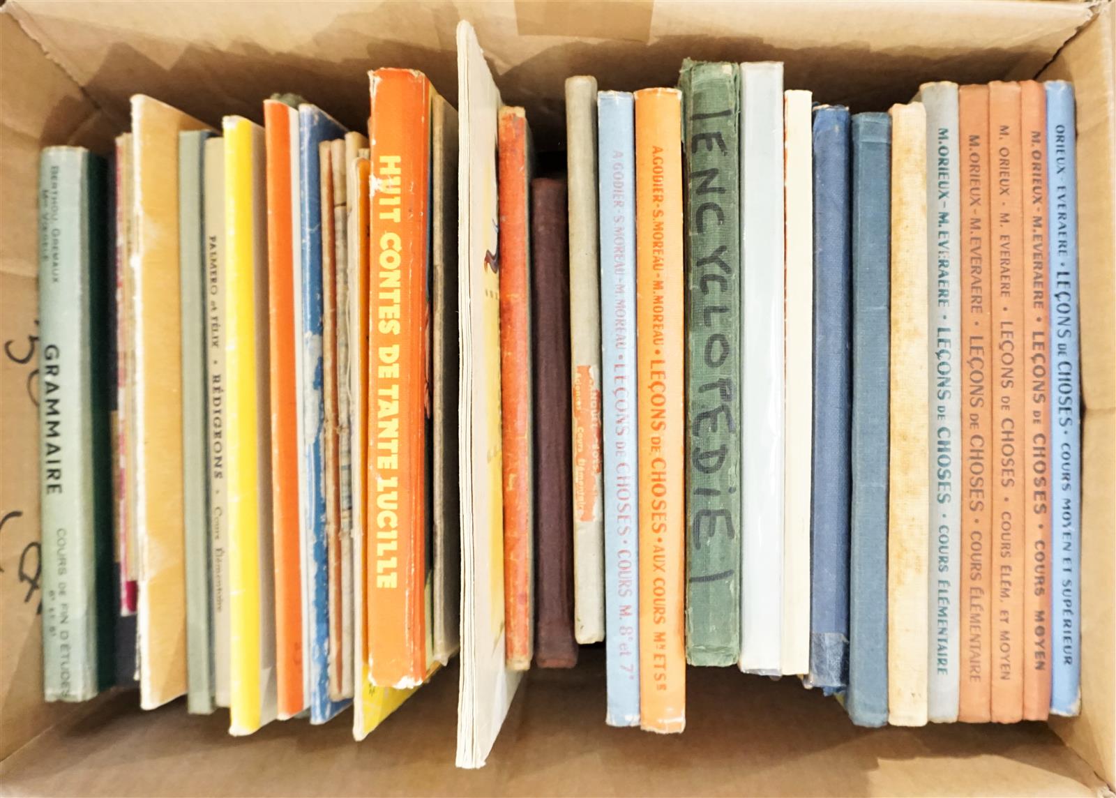 [ENFANTINA] Important ensemble de 6 cartons de livres d'enfants dont livres scolaires : lecture, grammaire, vocabulaire pour classes maternelles et primaires, contes, albums illustrés et divers. On joint 2 albums de cartes postales vides en bon état.