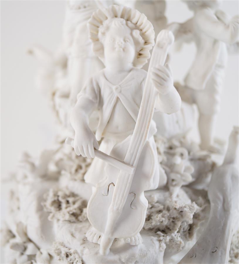 "Enfants musiciens", groupe en biscuit figurant quatre enfants jouant de la musique, H. 25 cm (accidents et manques).