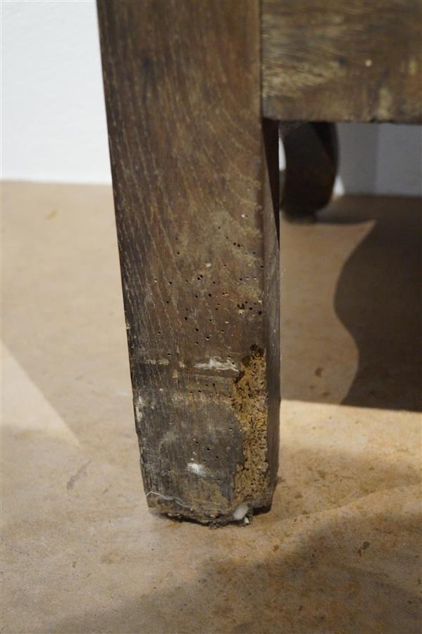 Enfilade en chêne ouvrant à trois tiroirs en partie centrale et à deux vantaux, pieds avant à double enroulement, travail rustique de la fin du 18e siècle, 170 x 53.5 x H. 97 cm (avec deux clés)
