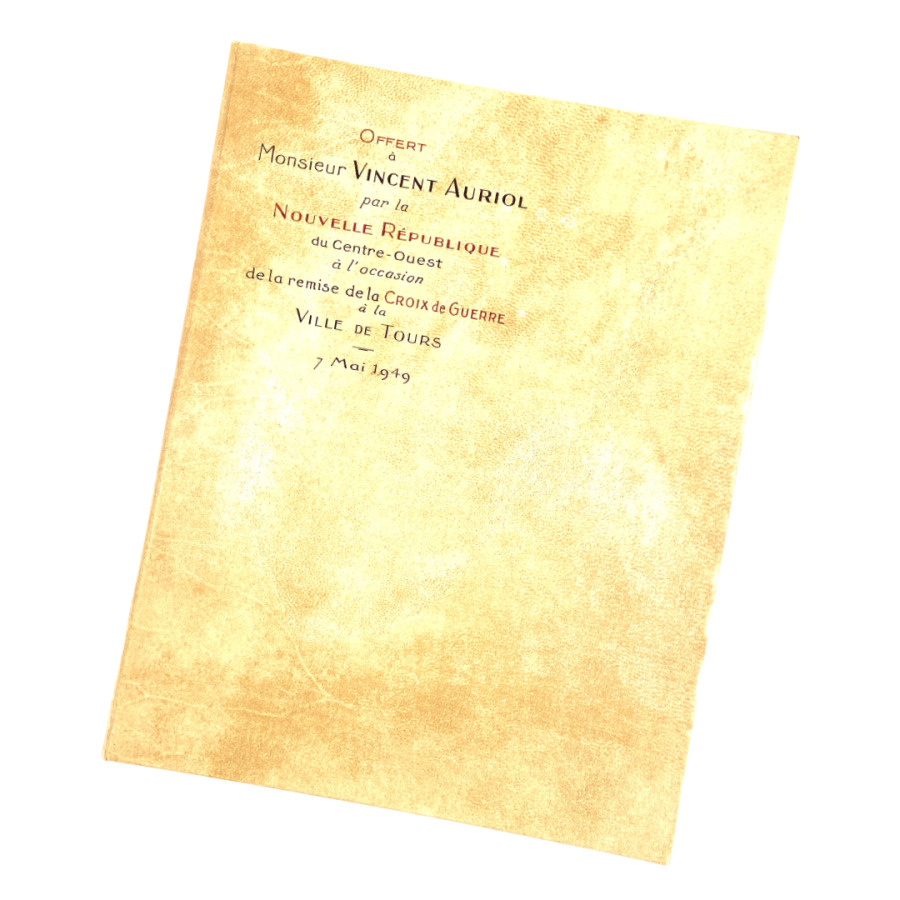 ENGERAND (Roland) - Honoré de Balzac. La Comédie Humaine au Jardin de la France - Sans lieu ; Sans nom, 1949 (Saint-Symphorien ; Imprimeurs Bourges et Leprivier) - 1 volume In-4° en feuilles sous couverture rempliée titrée couleurs et ornée d'1 portrait en médaillon au 1er plat, chemise éditeur coquille d'oeuf avec mention au 1er plat " Offert à Monsieur Vincent Auriol par la Nouvelle-République de Centre-Ouest à l'occasion de la remise de la Croix de Guerre à la ville de Tours. 7 mai 1949 " et emboîtage à l'identique - Des rousseurs éparses, principalement aux feuillets de texte - Frontispice et 11 planches gravés sur bois en noir avec signature autographe de Ferdinand Dubreuil, nombreuses lettrines et vignettes in texte rehaussées à l'aquarelle - Bon exemplaire nominatif sur Rives (tiré spécialement pour M. Le Président Vincent Auriol avec justification personnalisée), lettré D (sur les 25 marqués A à Z (tirage total : 325 + 25 hors commerce).