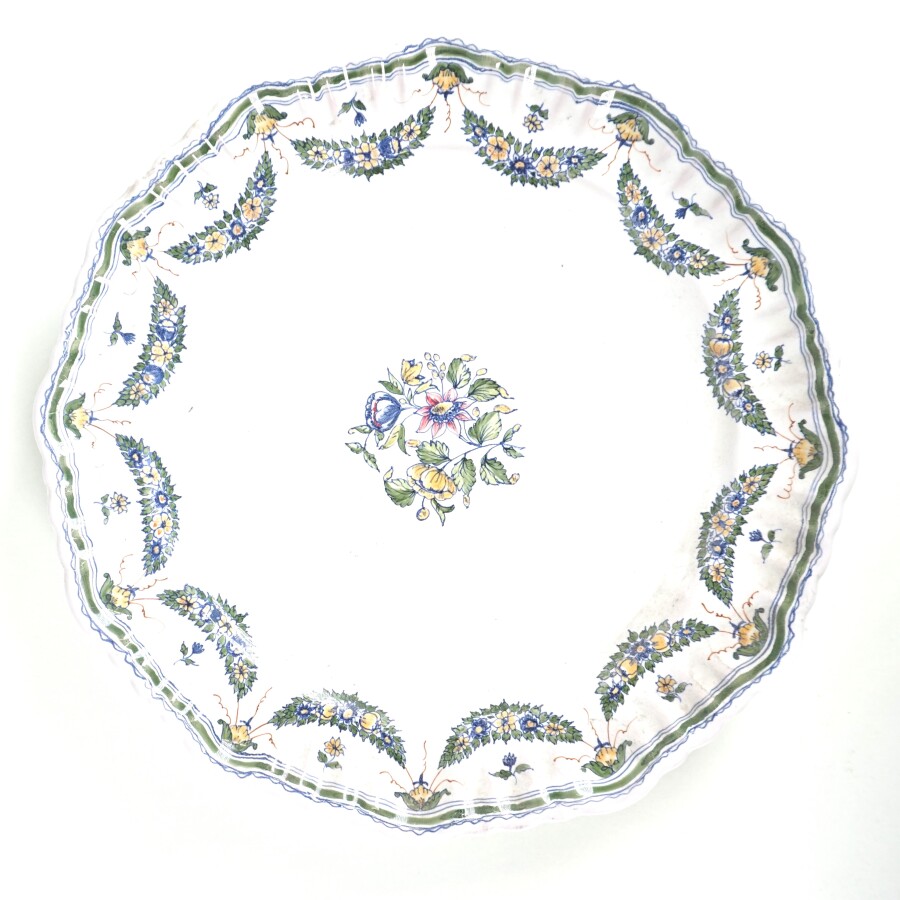 Ensemble comprenant 16 assiettes et plats en céramique émaillée polychrome de diverses manufactures françaises et étrangères, 20ème siècle, D Plus grand plat : 36 cm (égrenures).