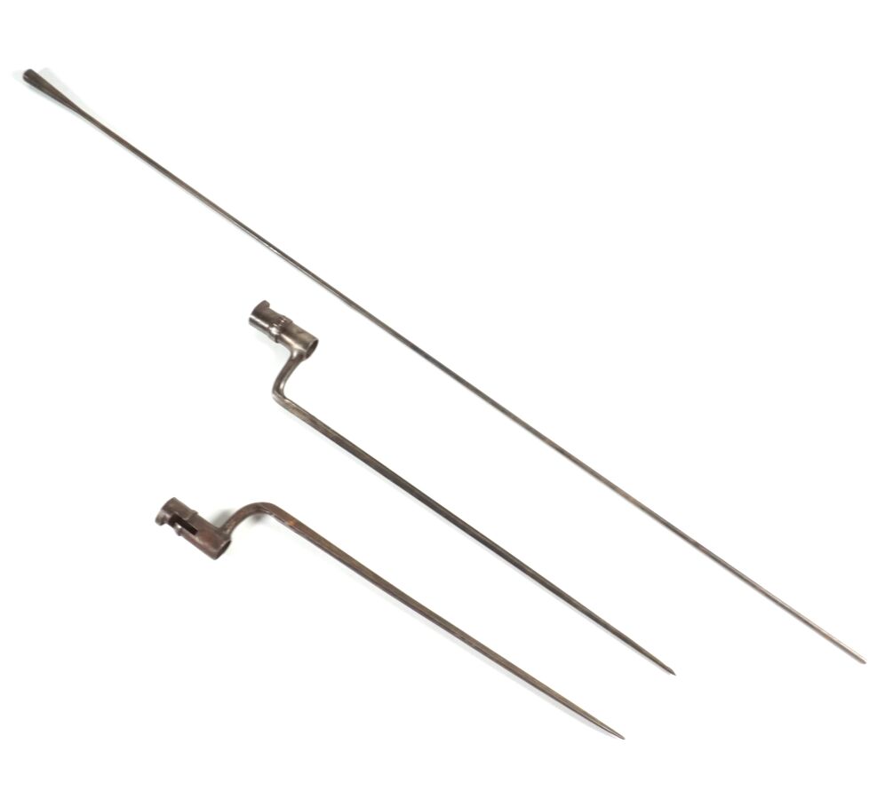 Ensemble comprenant 2 BAIONNETTES A DOUILLES, virole manquante sur l'une des deux, longueurs : environ 52,8 et 47,5 cm, ABE/BE.