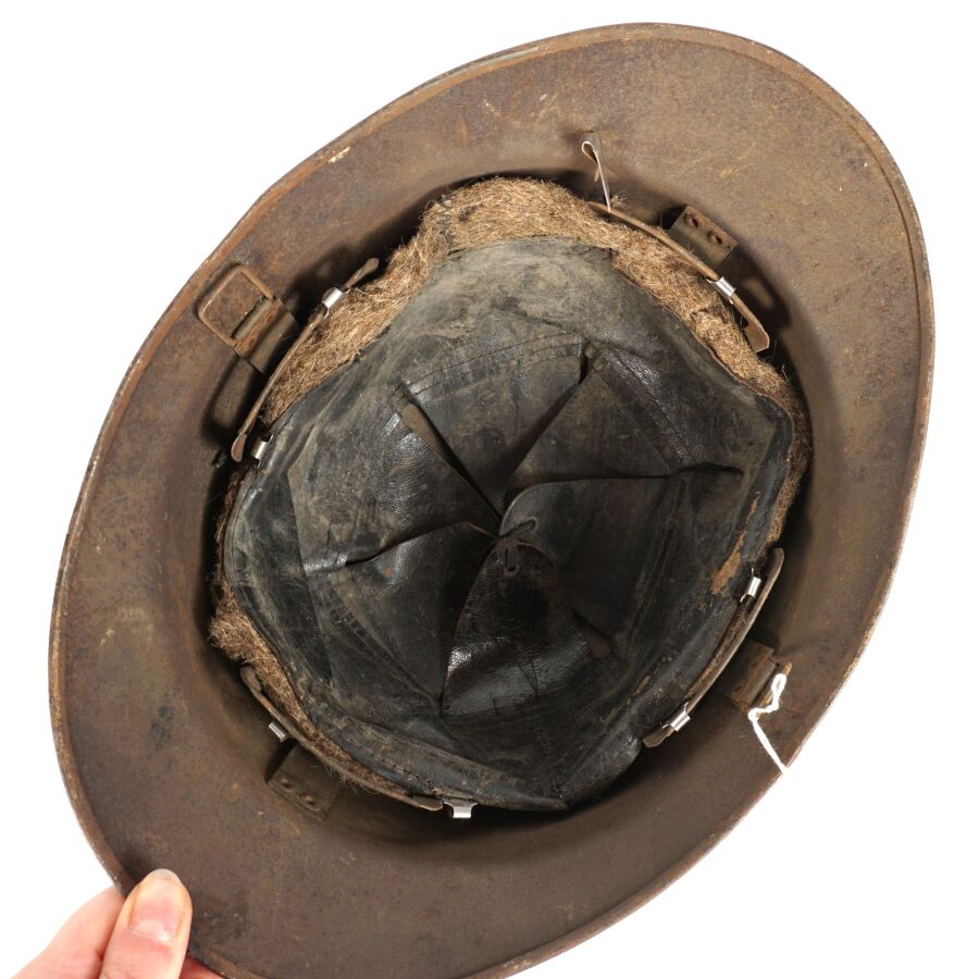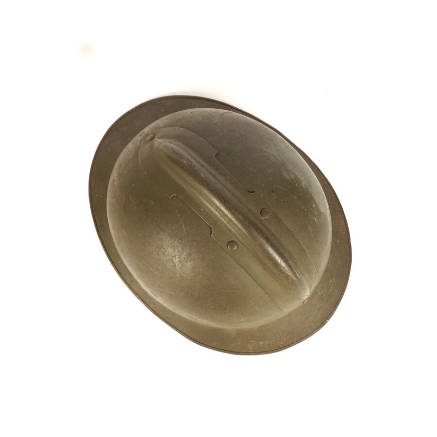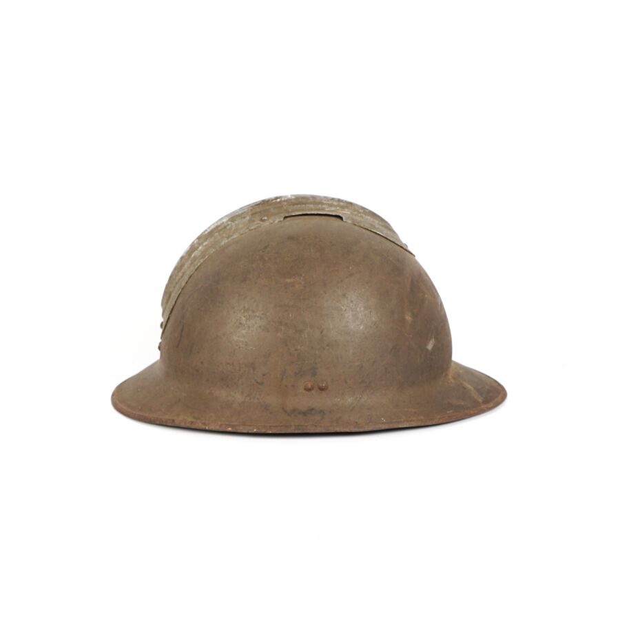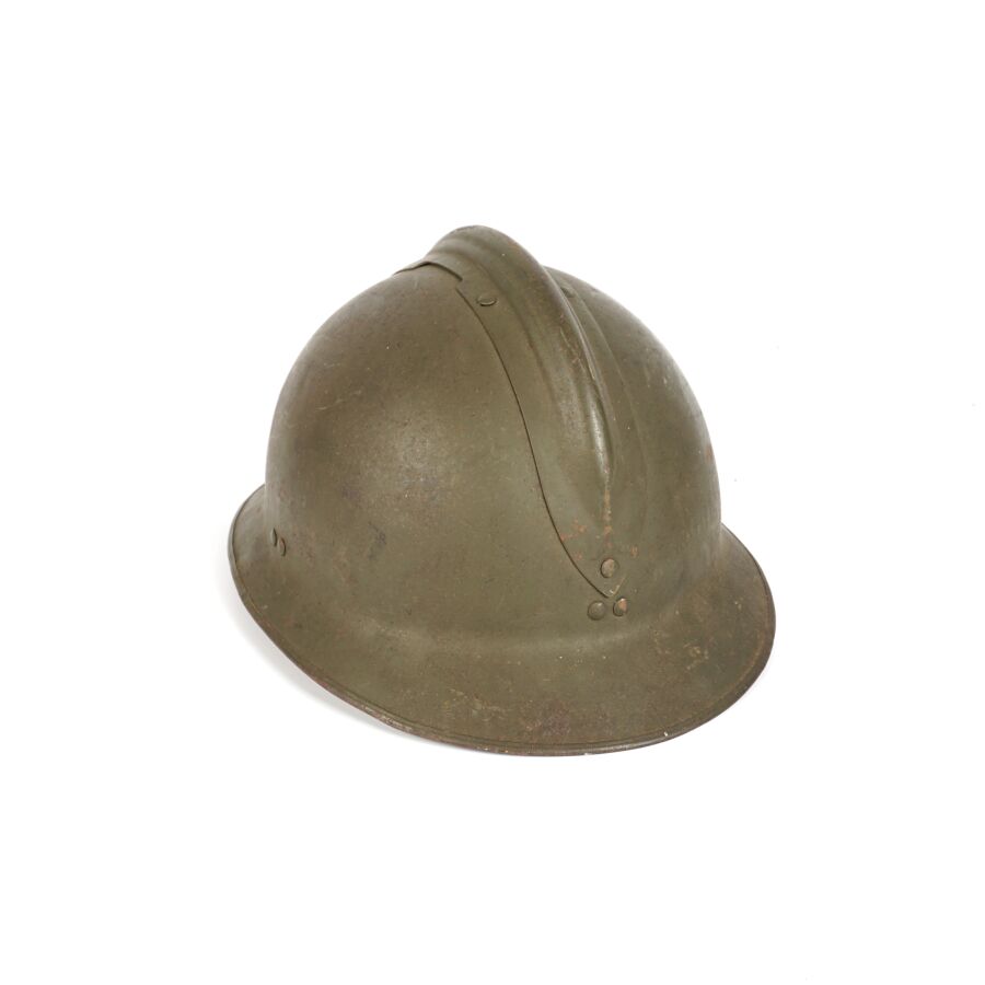 Ensemble comprenant : 2 CASQUES ADRIAN MODELE 1926, bombes kakis, sans insigne, les deux avec coiffes intérieures en cuir noir, un des deux avec jugulaire en cuir marron, ABE/BE.