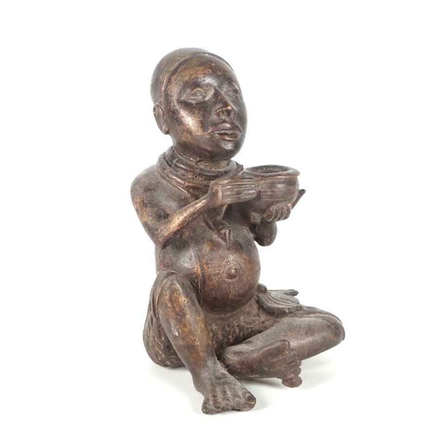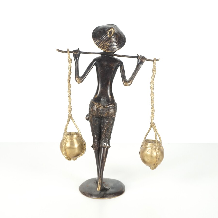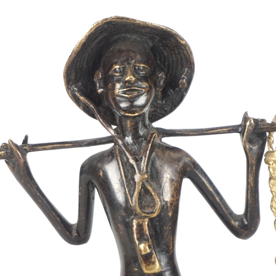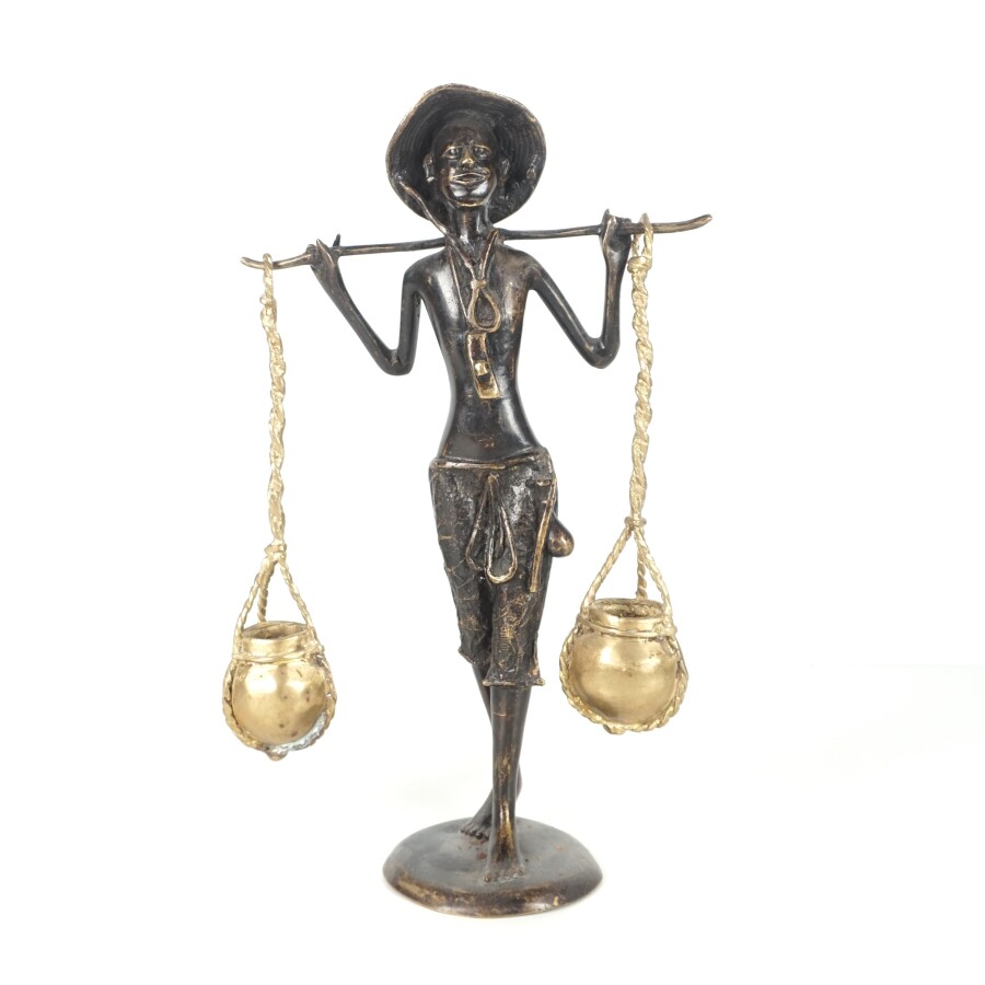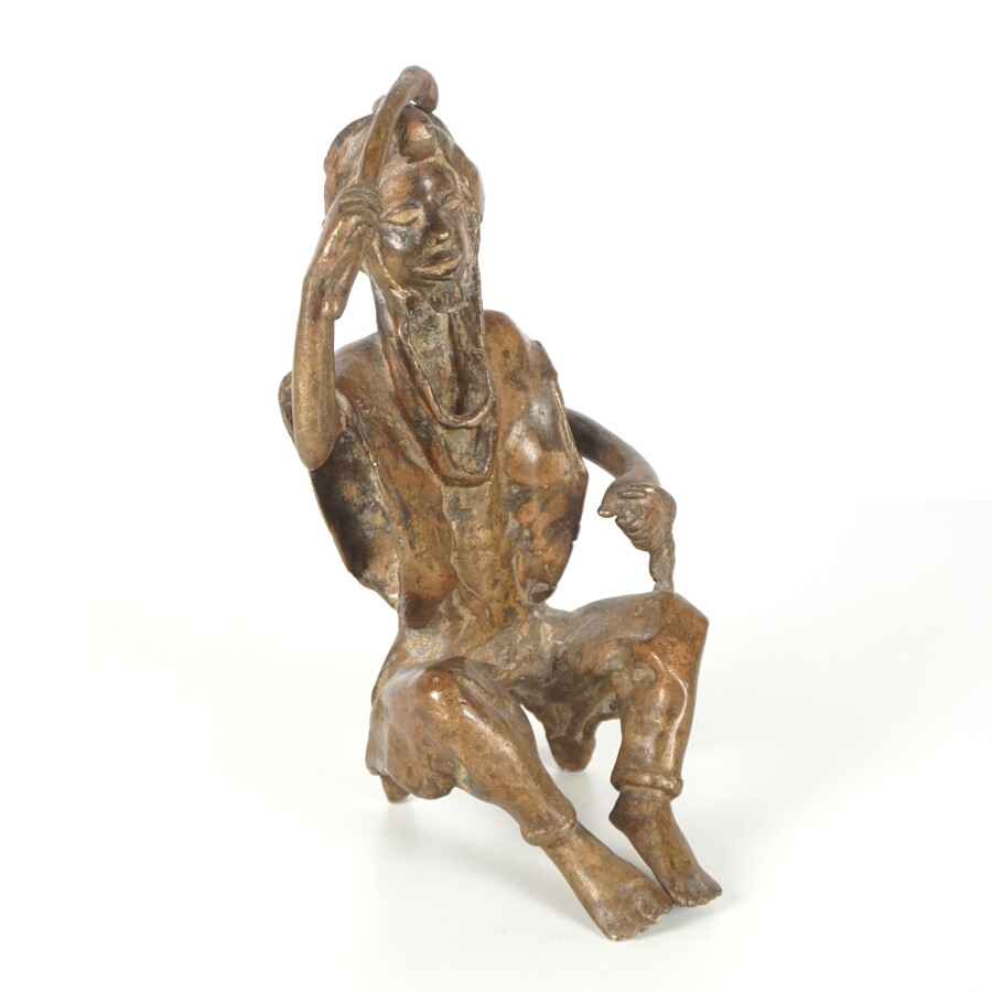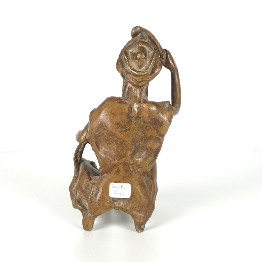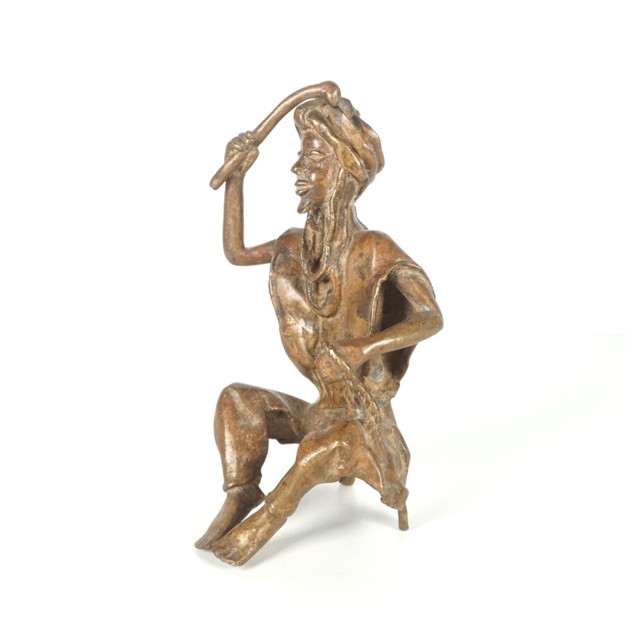 Ensemble comprenant 3 sujets en métal représentant des personnages, travail moderne décoratif, H. Plus grande sculpture : 32.5 cm.