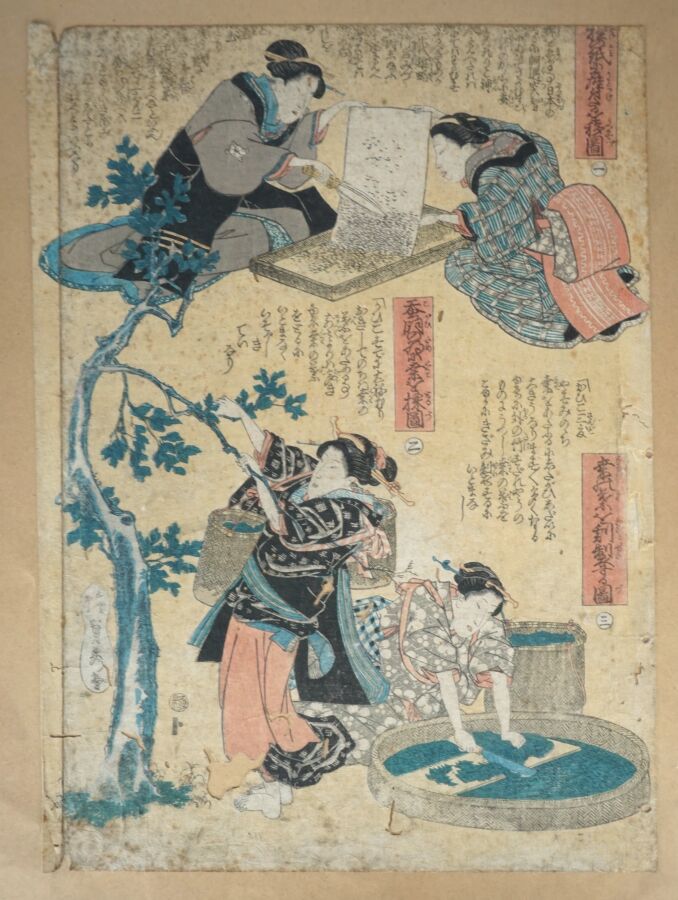 Ensemble comprenant trois estampes dont deux d'Utagawa Kuniyoshi dont :