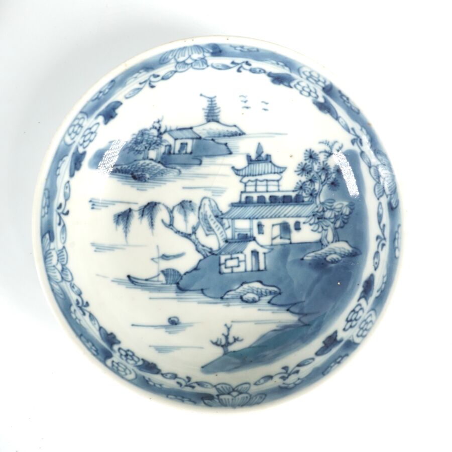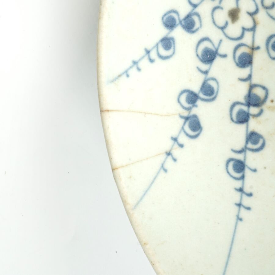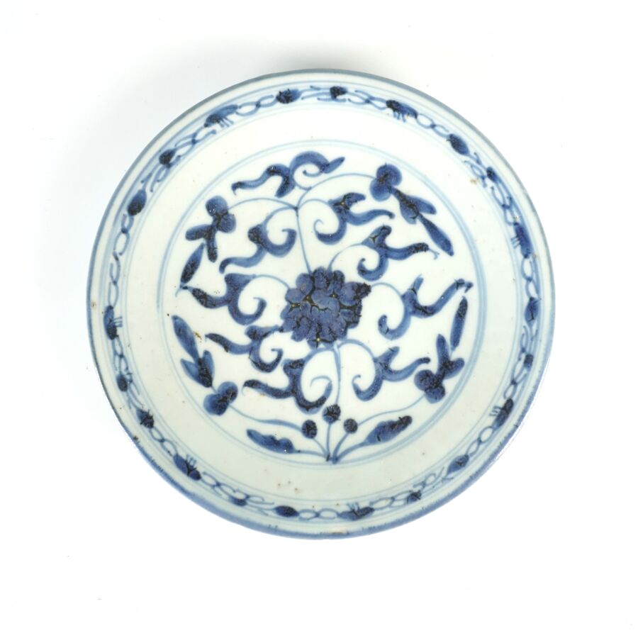 Ensemble de 10 porcelaines à décor émaillé bleu blanc comprenant coupes, plats, assiettes et plat polylobé à motifs de volatiles, rinceaux, feuillages, personnages et compositions florales, Chine, Vietnam, époque Qing, Diam. De 13.9 cm à 26.5 cm (fêles et petits éclats).