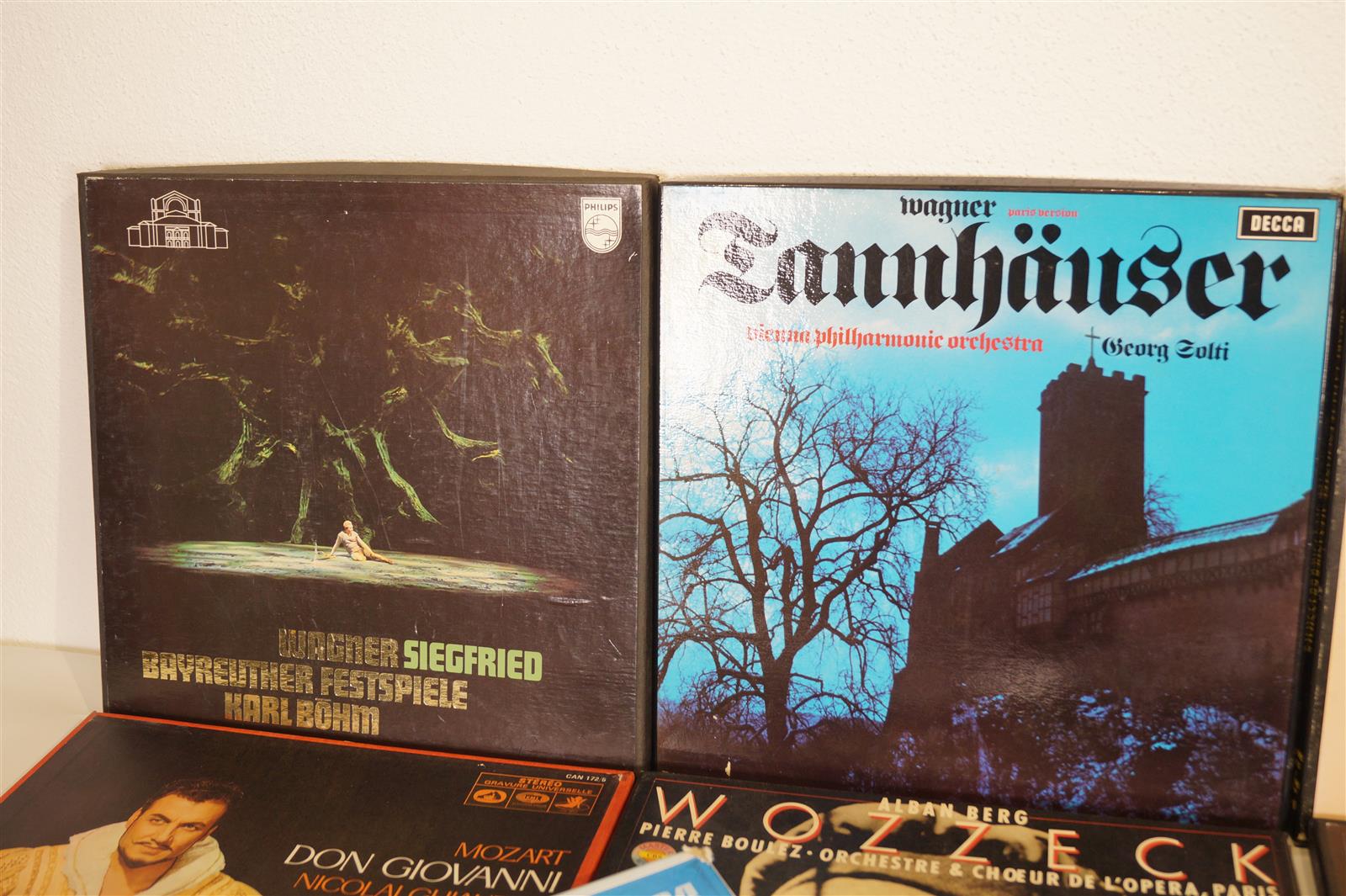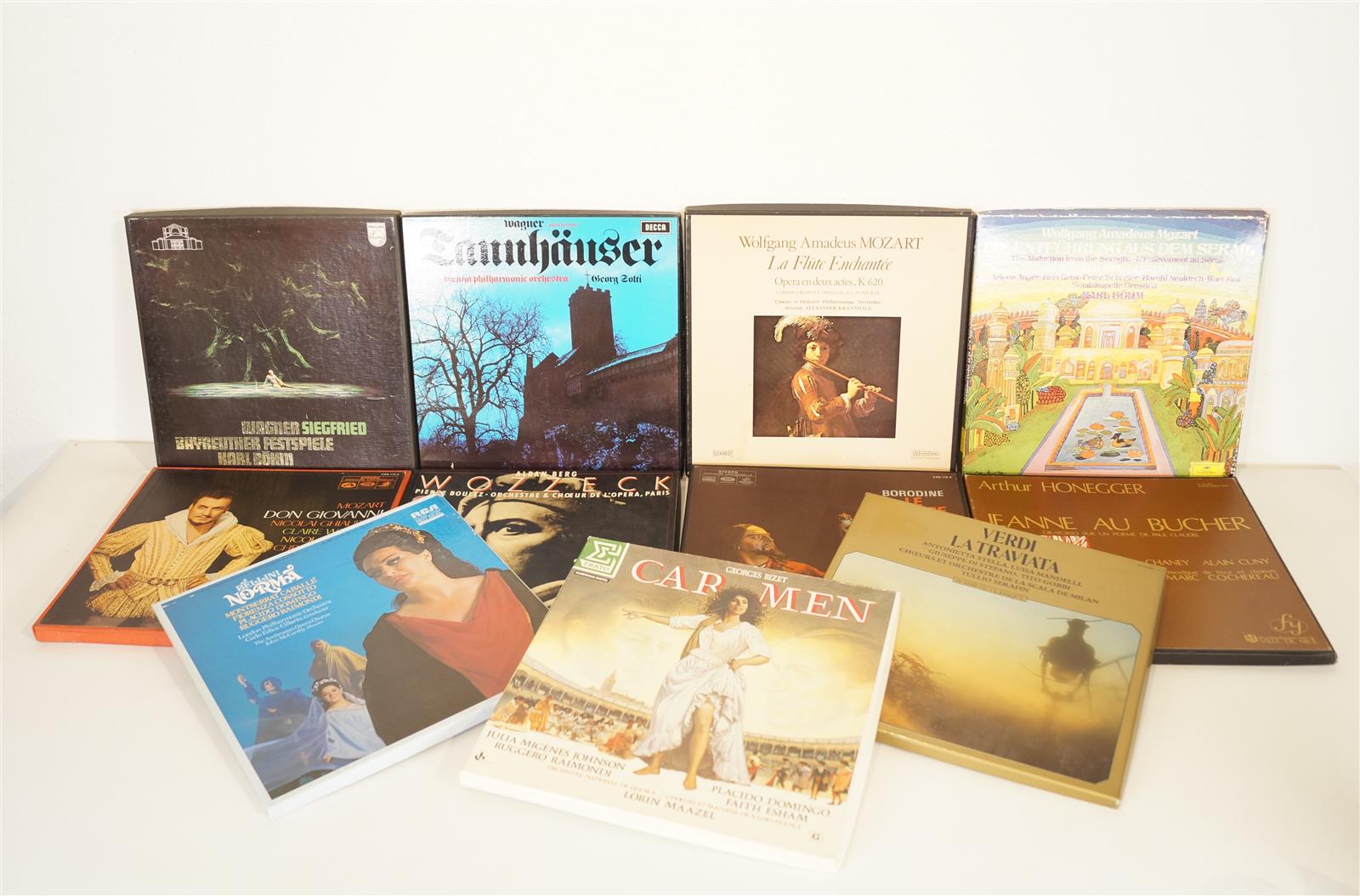Ensemble de 11 coffrets de vinyles de musique classique et opéra dont : Bellini, Mozart, Carmen, La Traviata, etc.