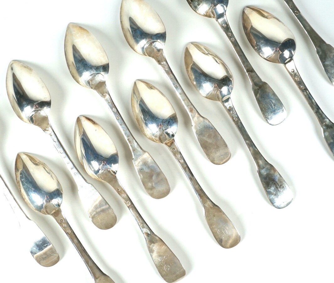 Ensemble de 11 grandes cuillères en argent, poinçon Vieillard 1er titre, d'un modèle uniplat ressemblant, mais de différents orfèvres, comprenant :
