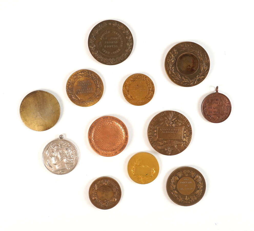 Ensemble de 12 médailles diverses dont :