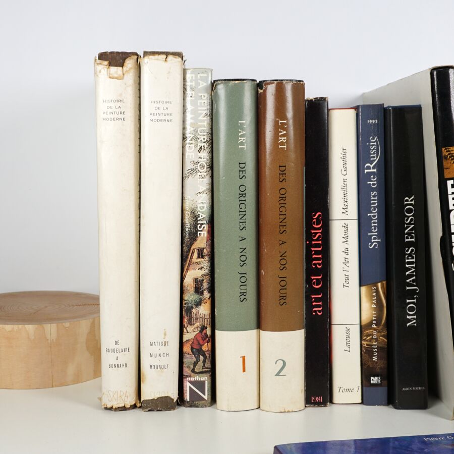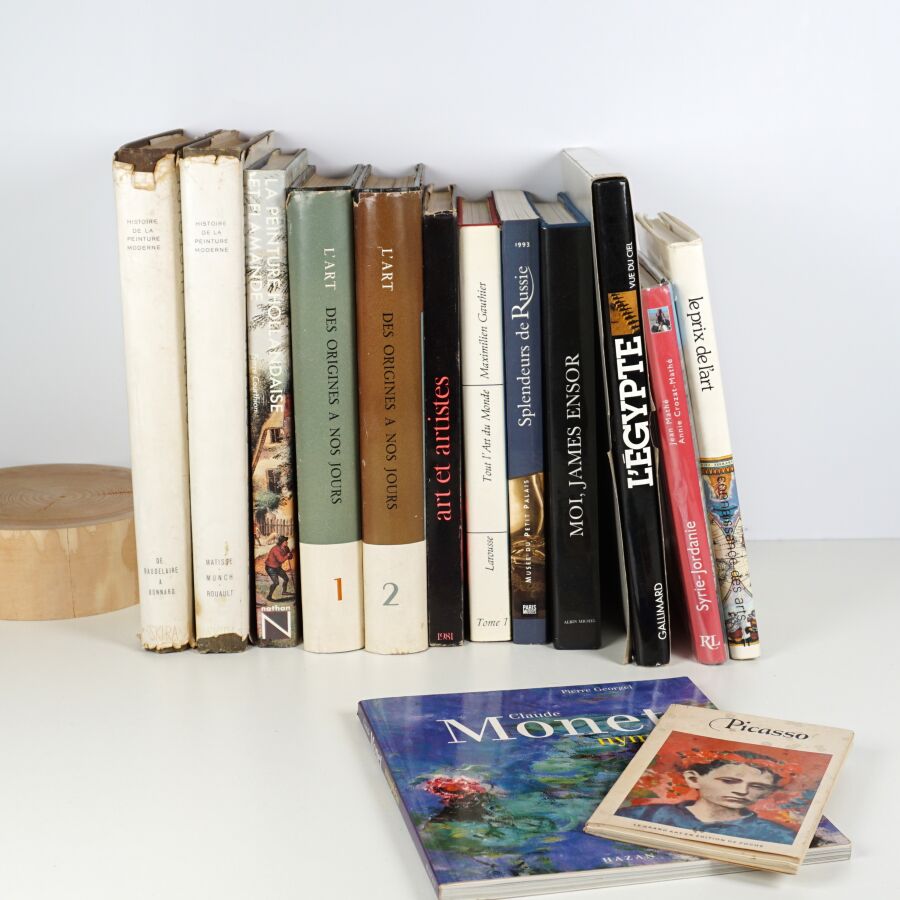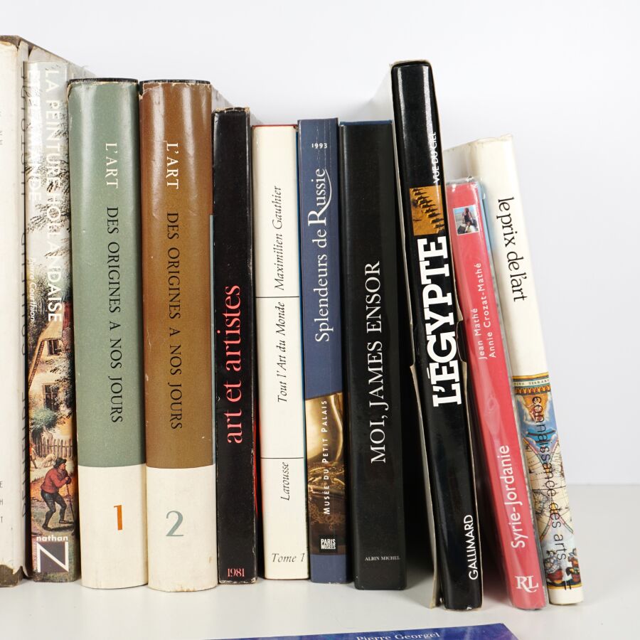 Ensemble de 14 livres de documentation, majoritairement d'Histoire de l'art, dont Ensor, Egypte, peinture hollandaise, etc. (non collationné, en l'état).