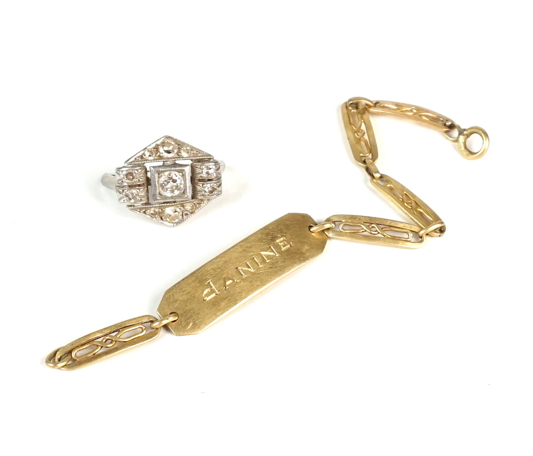 - une gourmette de bébé en or jaune, L. 9.5 cm.