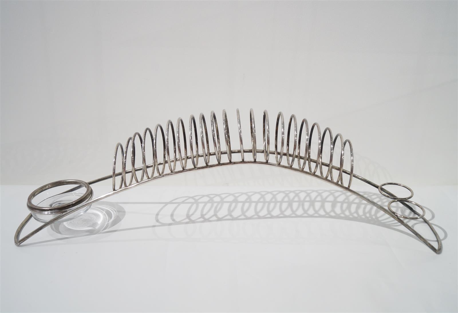 Ensemble de 2 grands présentoirs en métal argenté, l'un pour les crustacés, D. 41 cm, l'autre pour les toasts, L. 69 cm.