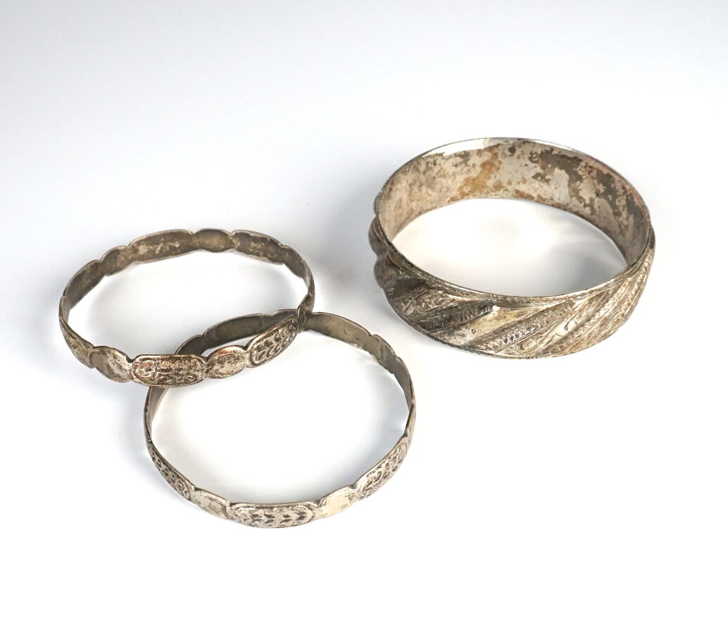 Ensemble de 3 bracelets "Joncs" en argent (800/oo), comprenant :