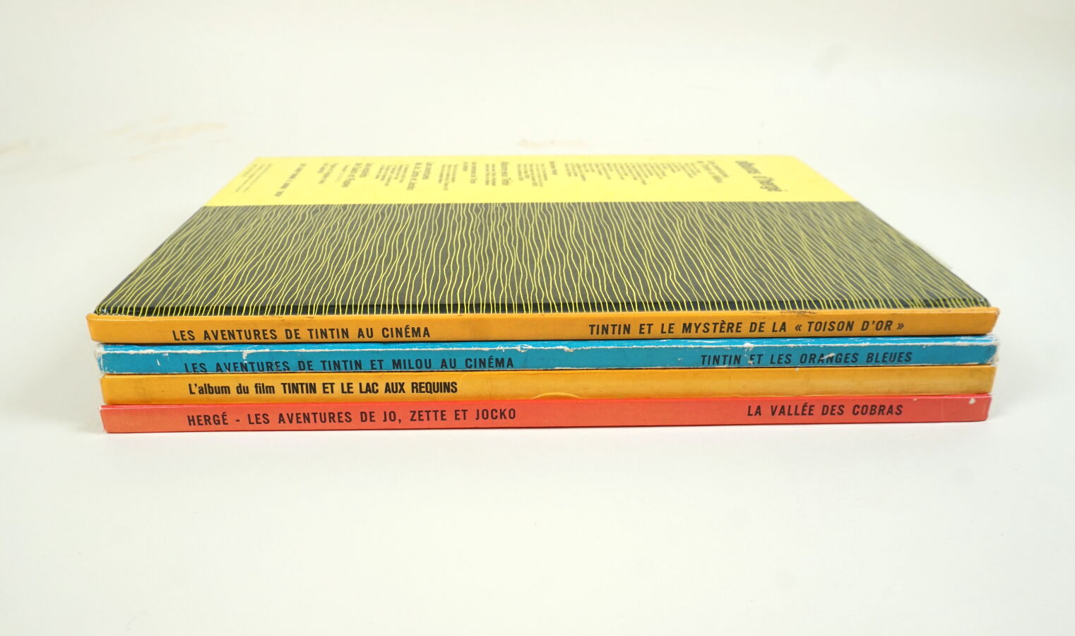- Les Aventures de Tintin au Cinéma - Dont : Titin et le Lac aux Requins - Tintin et le Mystère de la toison d'Or - Tintin et les Oranges Bleues - ed. Casterman - Etat moyen.