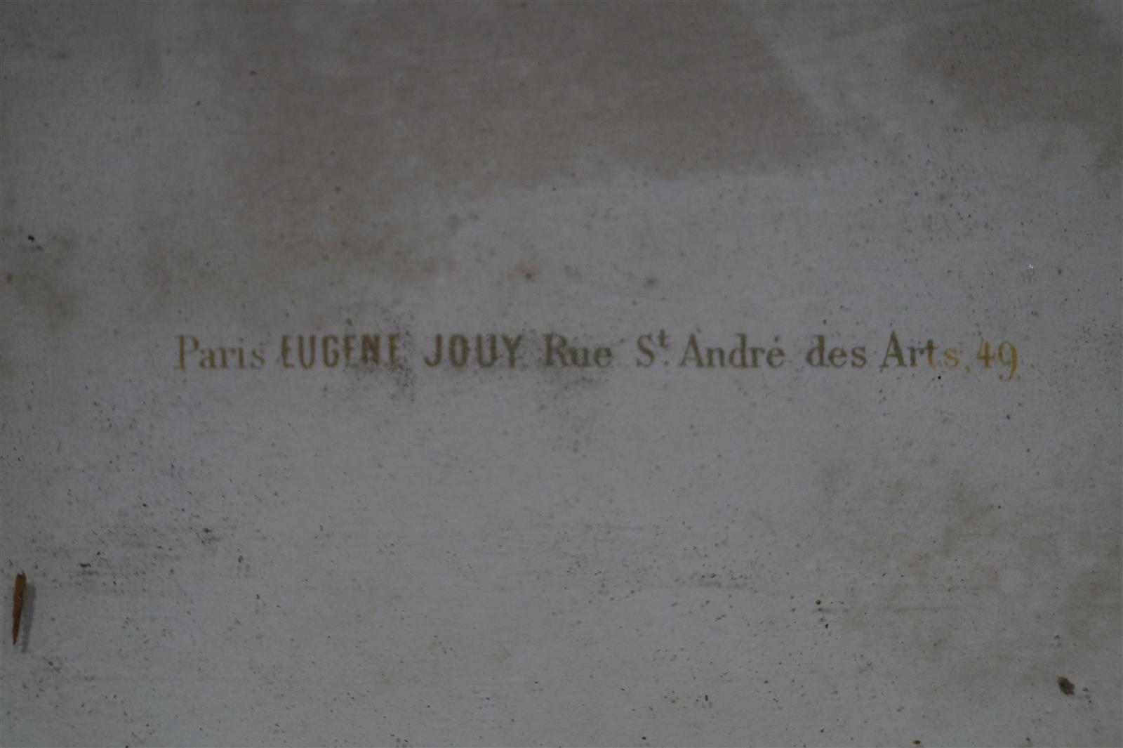 Ensemble de 4 estampes comprenant : "La Chasse aux perdrix" & "La Chasse aux chevreuils", deux lithographies à vue ovale, l'une par GRENIER FRERES et l'autre par LERMERCIER à Paris, 33 x 46 cm (mouillure en bordure) - On joint deux autres lithographies " Moutons, Bretagne" et "La danse, Espagne", circa 1870, 28,5 x 37 cm (en l'état).