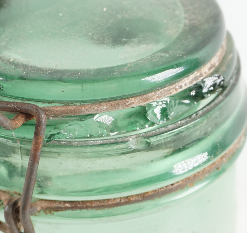 Ensemble de 5 bocaux en verre teinté vert, H. 17 cm à 22 cm (rouille, usures, éclats).
