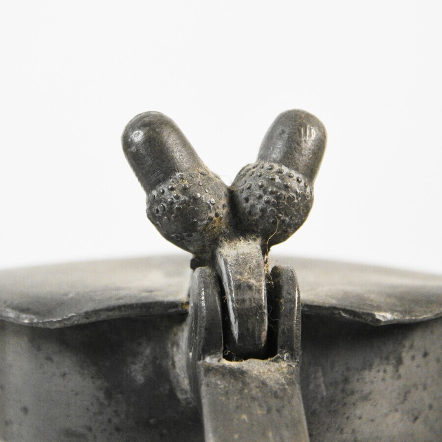 Ensemble de 5 mesures en étain, les prises formant des glands, 19e siècle, H. de 17 cm à 28.5 cm.