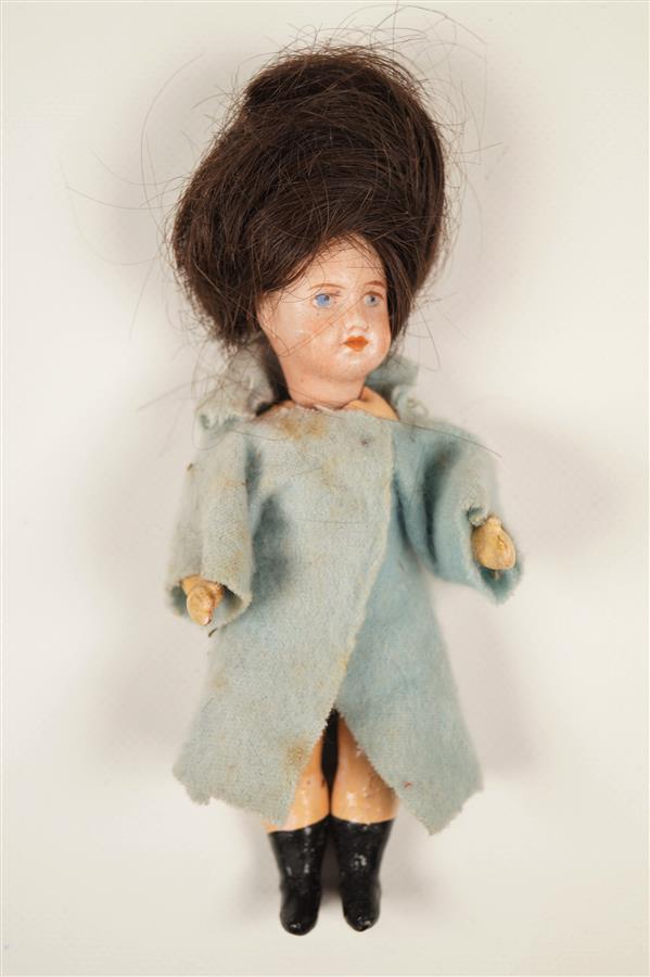 Ensemble de 5 petites poupées de diverses époques, fabrications et états, H. de 10 à 14 cm.