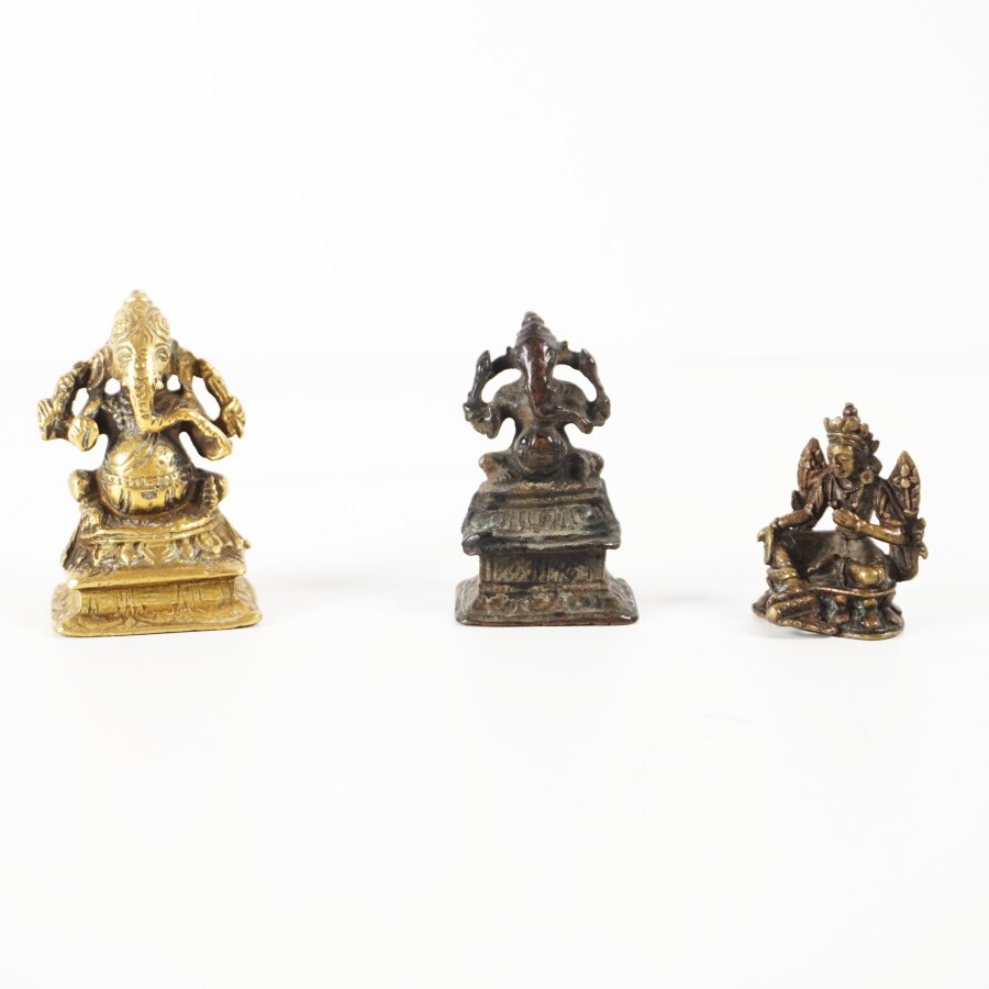 Ensemble de 6 divinités indiennes dont Ganesh, Taraverte, Tibet et Inde, 19ème siècle, etc, H. maximum : 6 cm.
