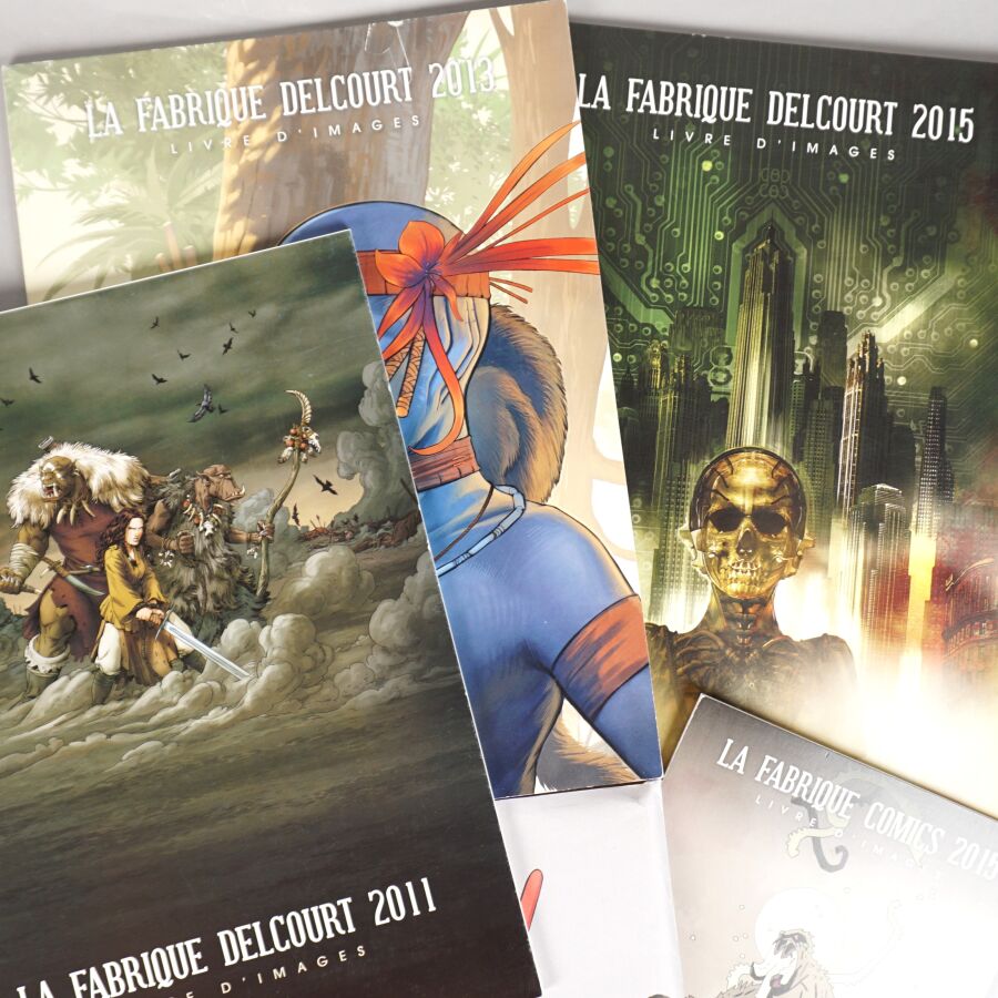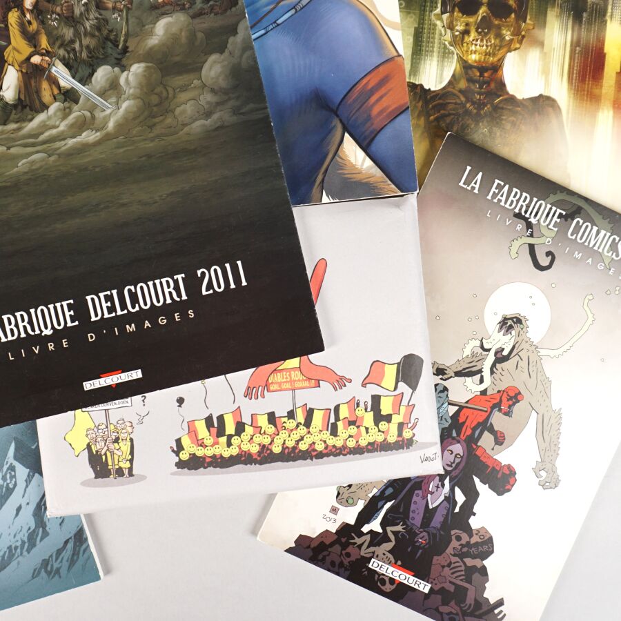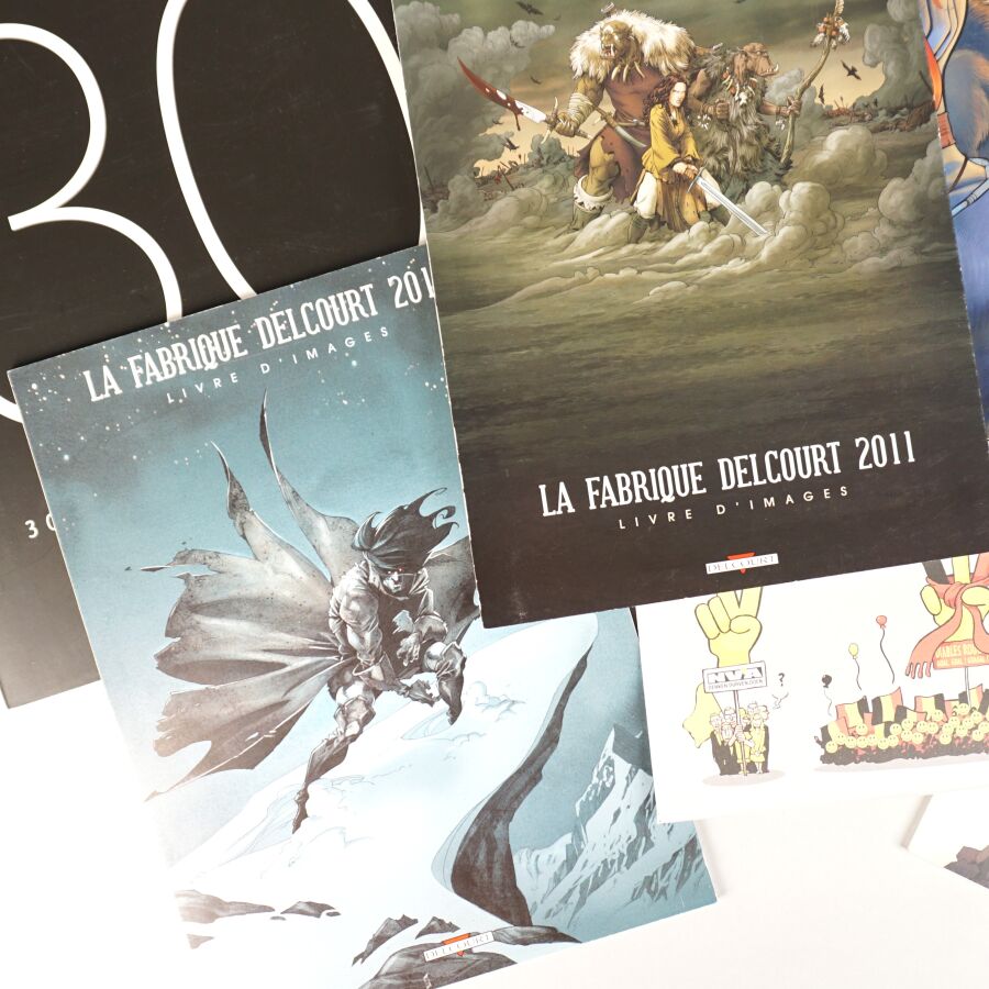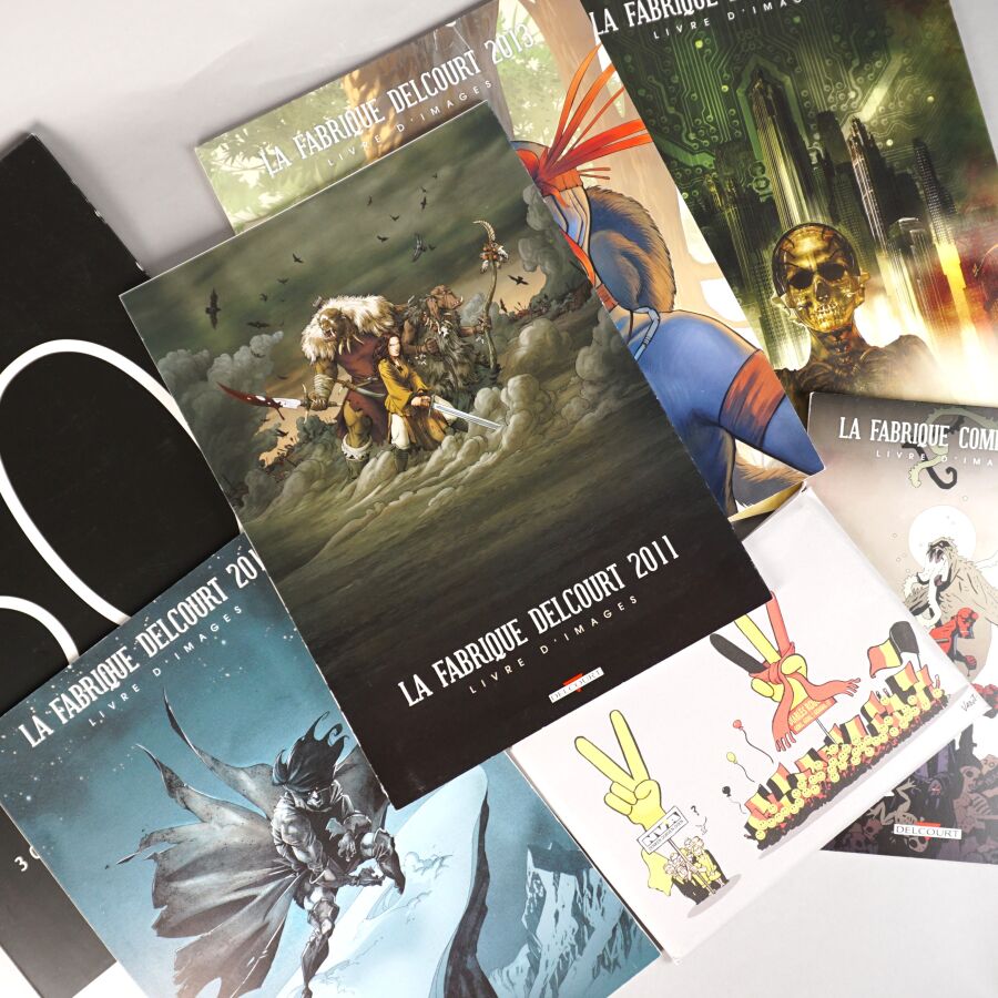 Ensemble de 6 portfolios LA FABRIQUE DELCOURT comprenant "30 ans, trente couvertures", et "La fabrique comics" 2015 (petit format) et 'La fabrique Delcourt" 2010, 2011, 2013, 2015 (grand format).