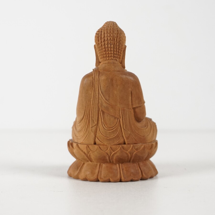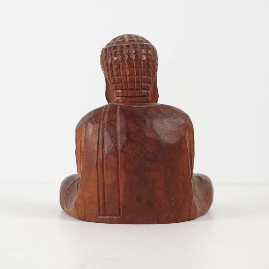 Ensemble de 6 statuettes en bois sculpté dont une dorée, représentant bouddha assis en méditation, Thaïlande ou Cambodge, 20ème siècle (?), H. min 7.5 cm et H. max 30.5 cm.