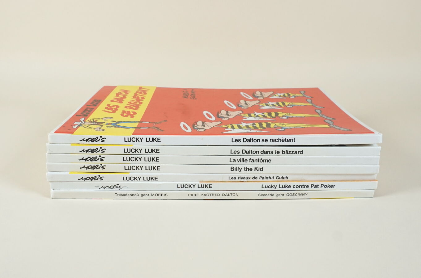 Ensemble de 7 albums : Lucky Luke - Dont : Billy the Kid - La Ville Fantôme - Pare Paored Dalton (un album en breton)... - Goscinny, Morris - Bon état.