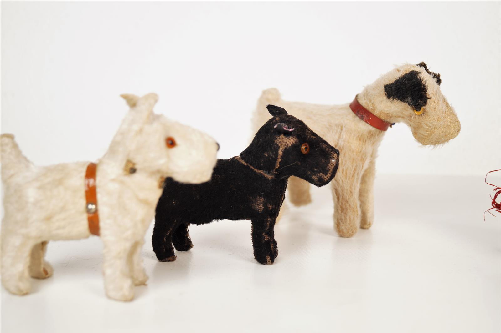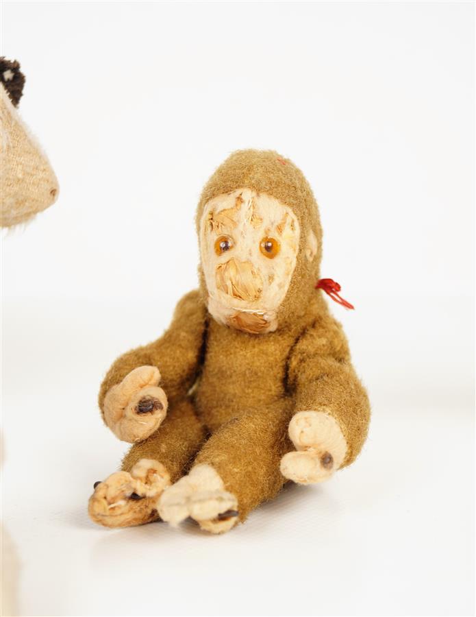 Ensemble de 7 petits animaux en peluche ou lainage, dont chiens, ours et singe.