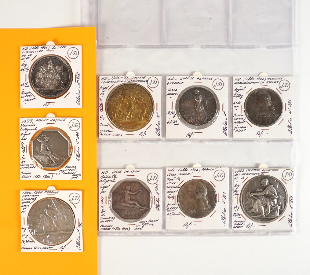 Ensemble de 9 médailles, dont 8 en argent et 1 en vermeil, comprenant :