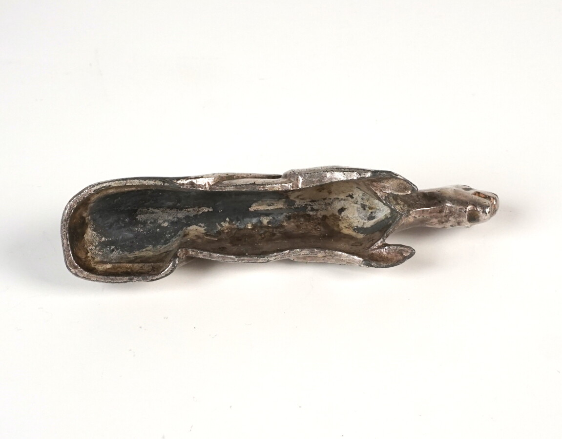 Ensemble de 9 porte-couteaux zoomorphes Art-Déco, en métal argenté, représentant différents animaux : otarie, singe, éléphant, panthère, oiseau, rhinocéros et poisson, L. de 7.5 cm à 9 cm (désargentures).